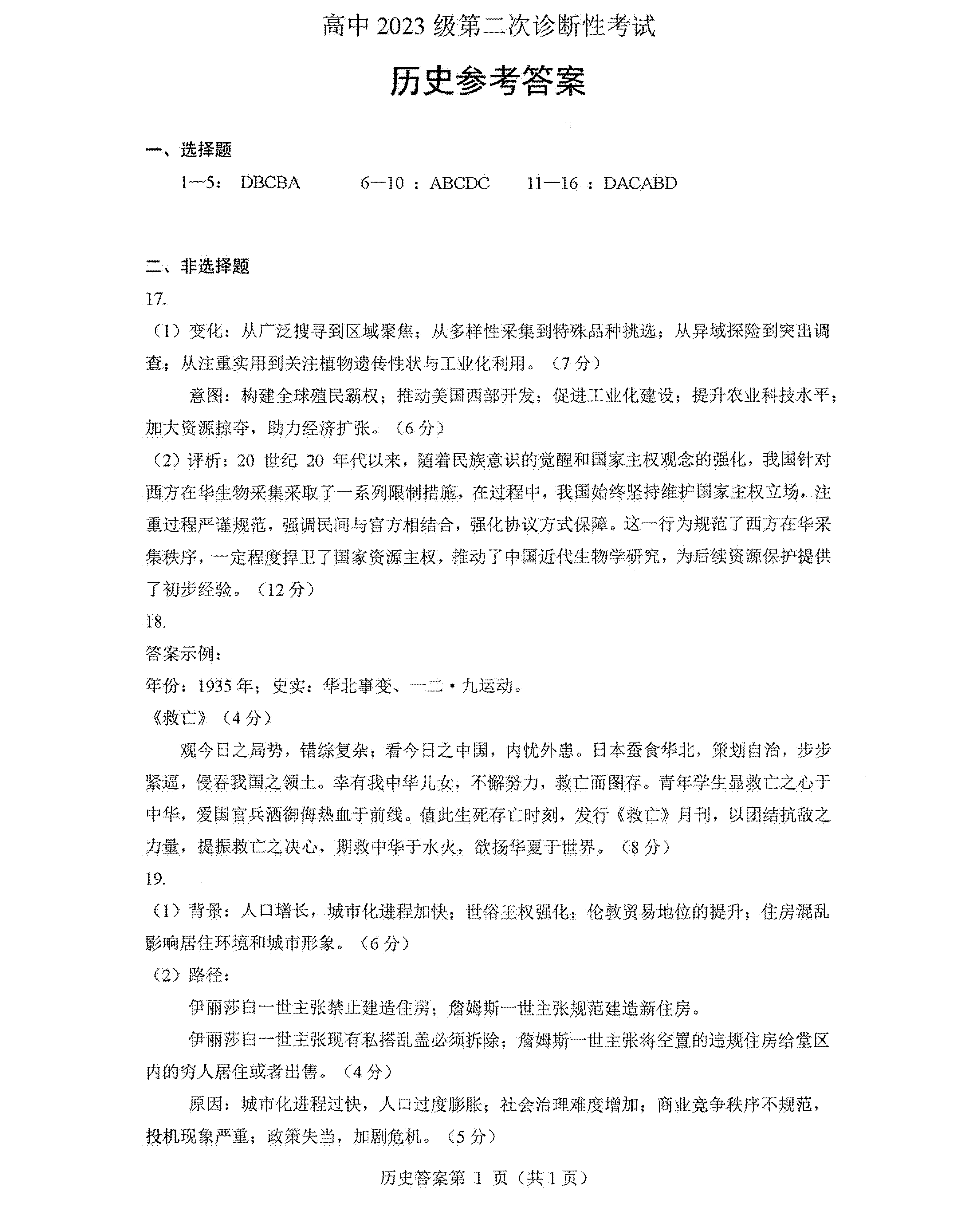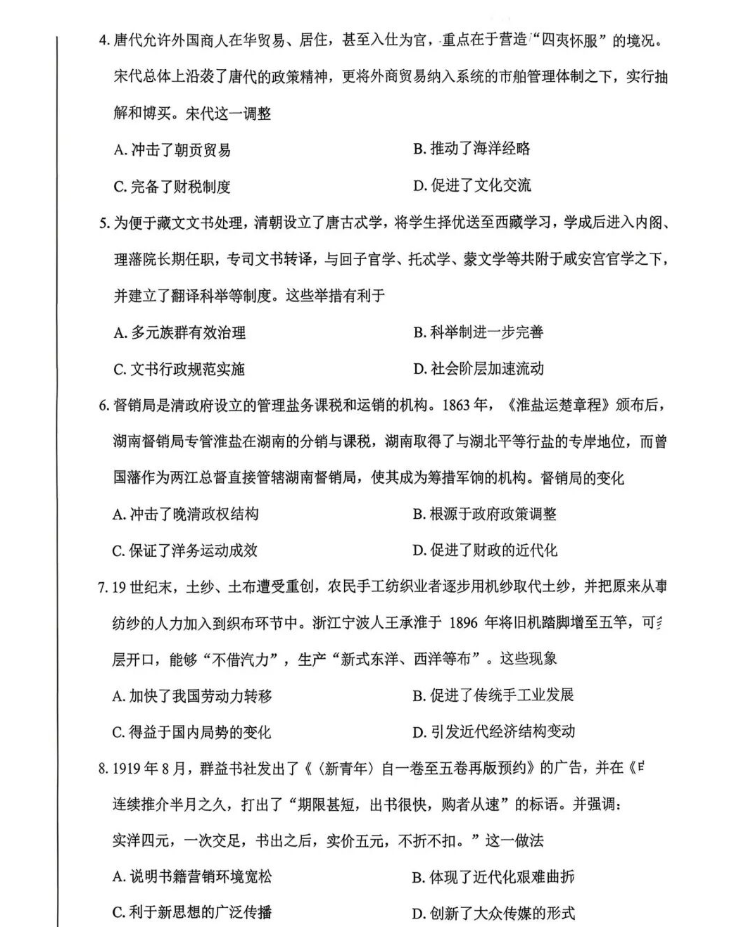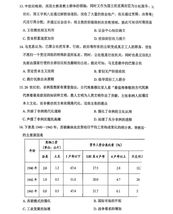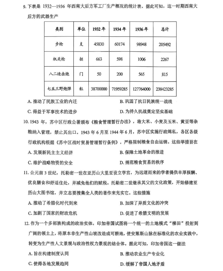 5、2026绵阳二诊历史试题及参考答案