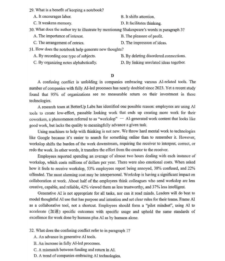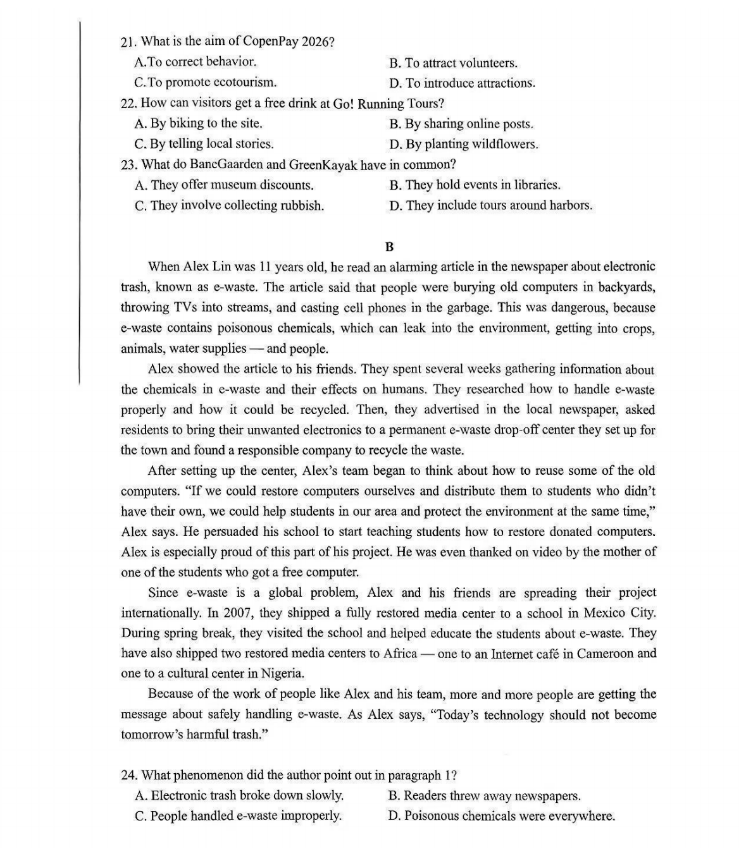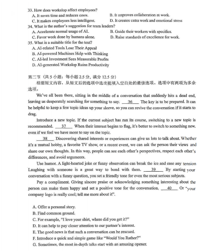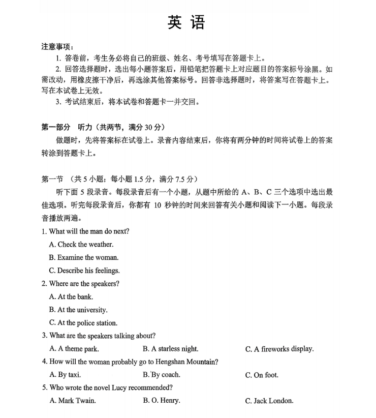 英语试卷及答案收集如下: