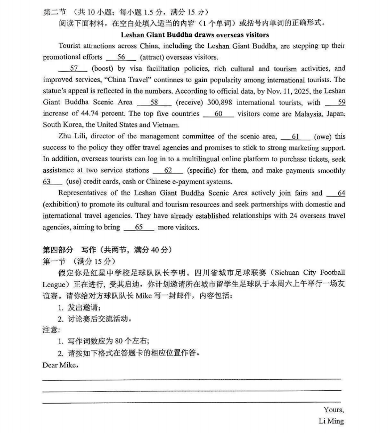 3、2026绵阳二诊英语试题及参考答案