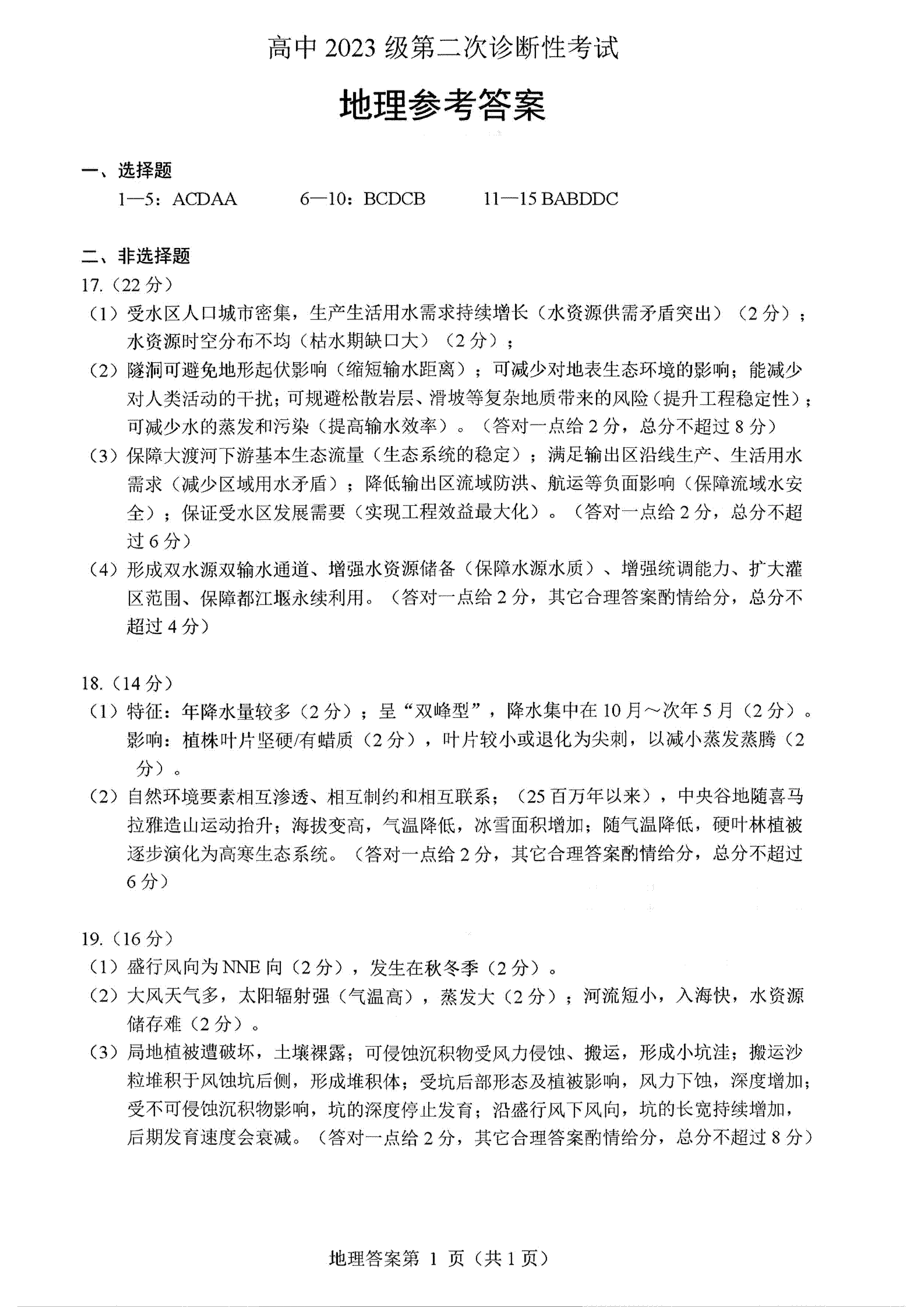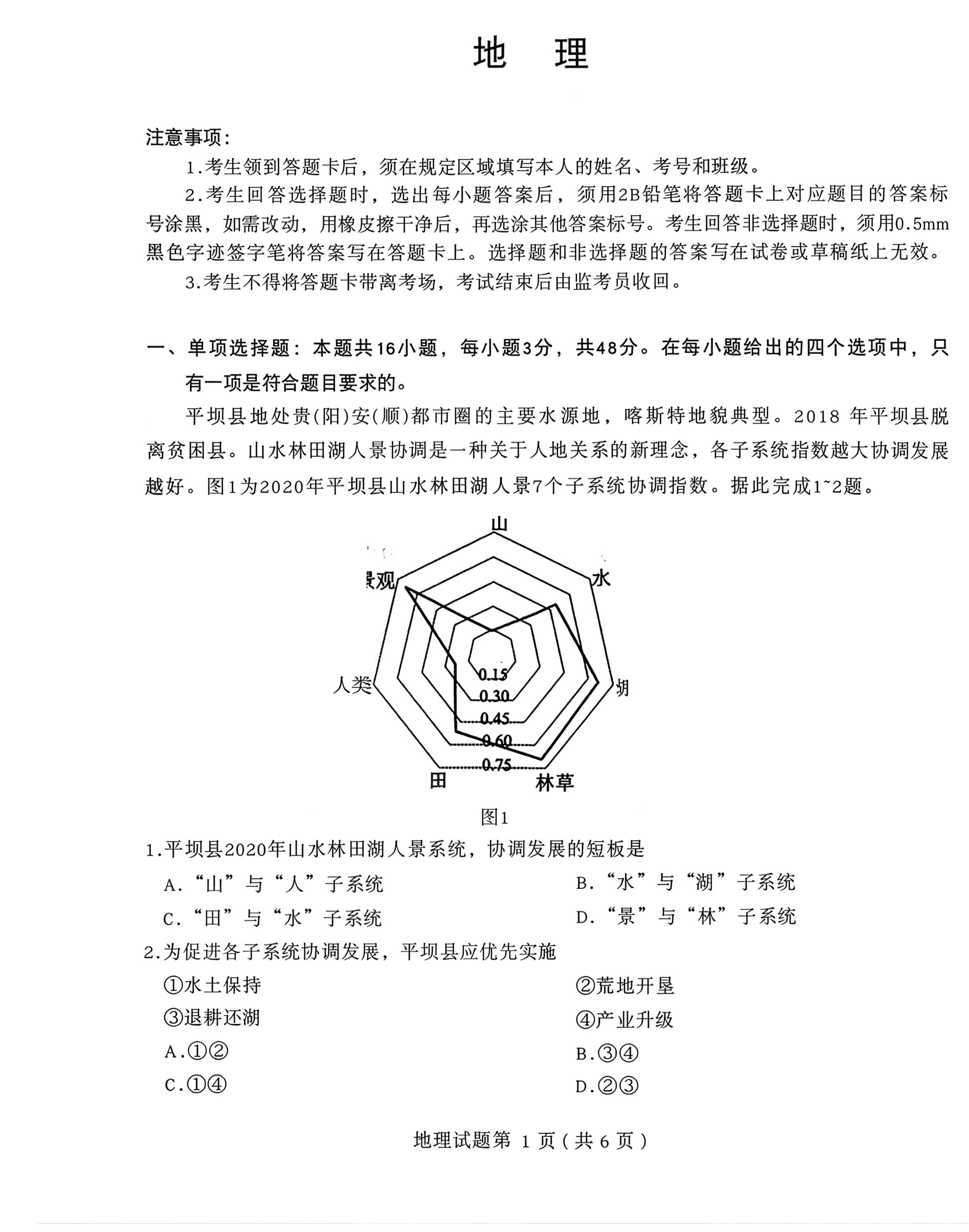 地理试卷及答案收集如下: