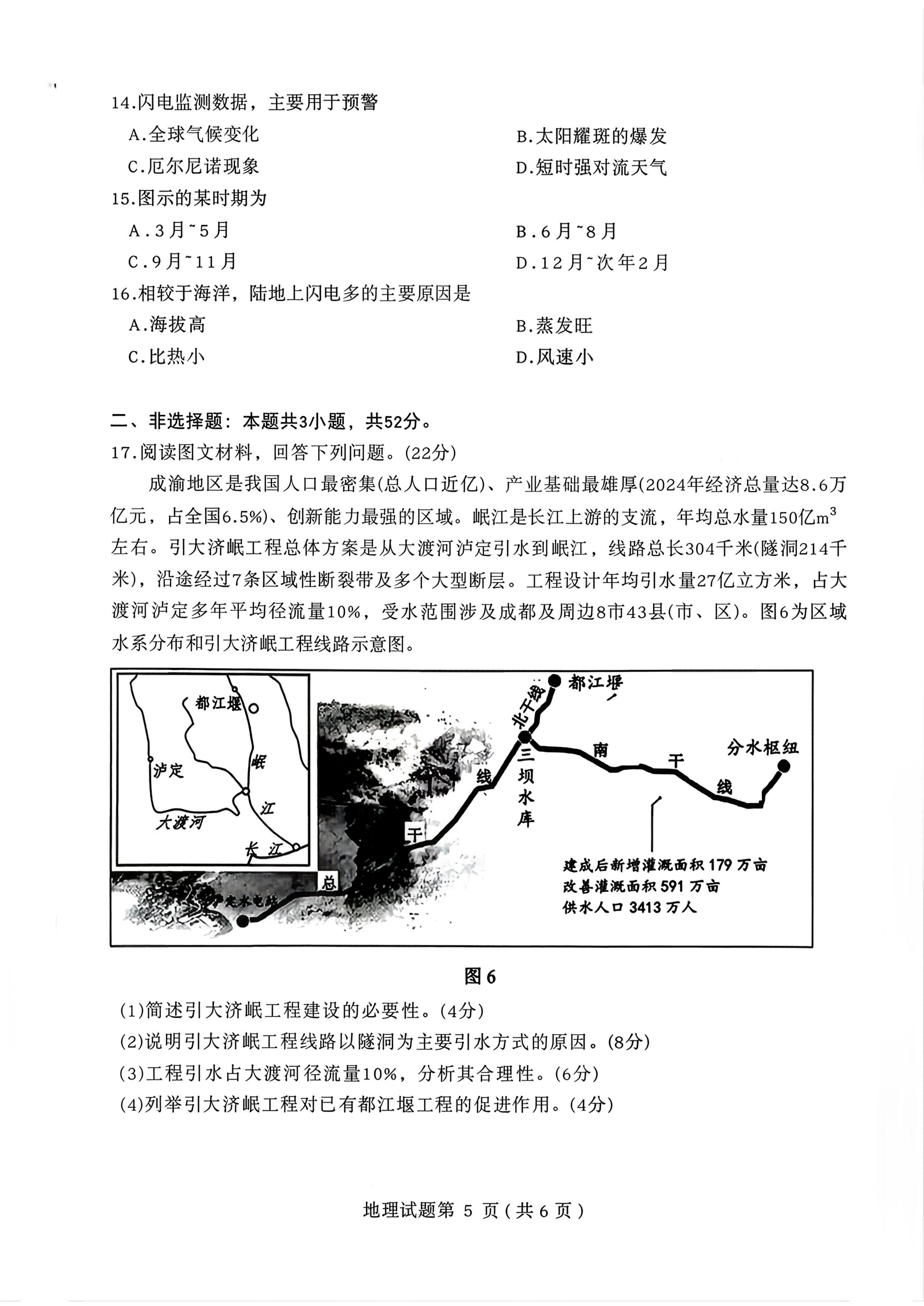 7、2026绵阳二诊地理试题及参考答案