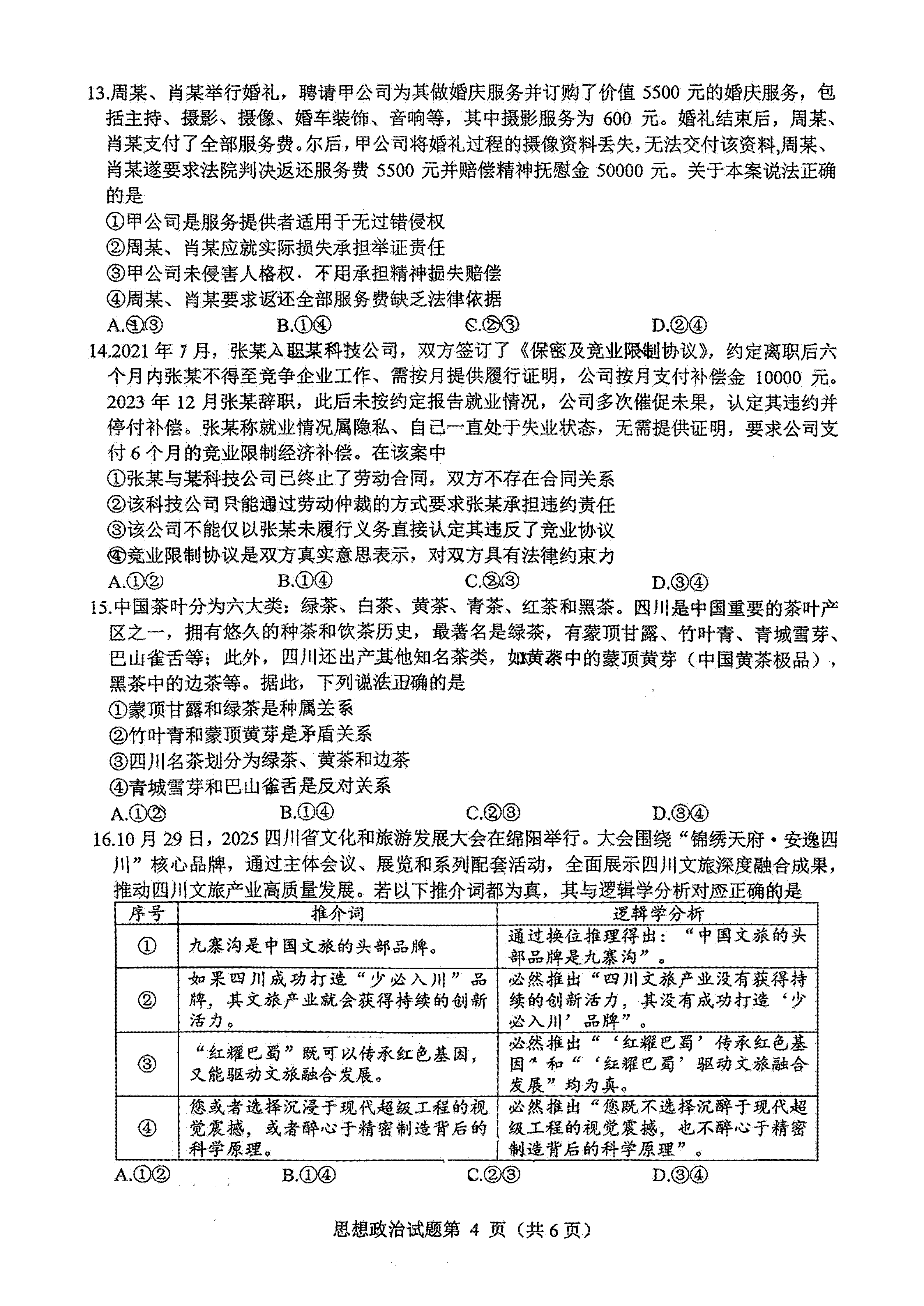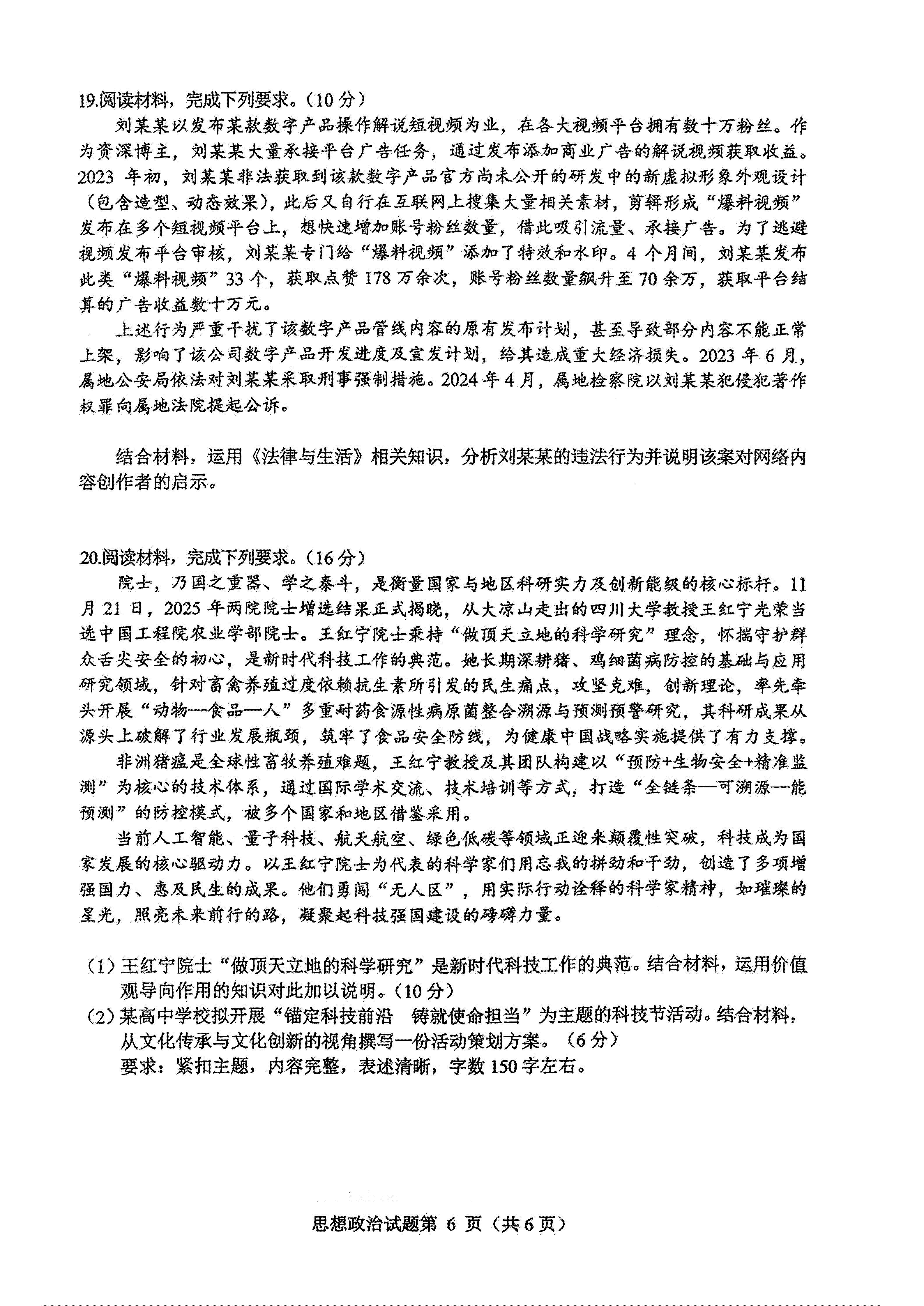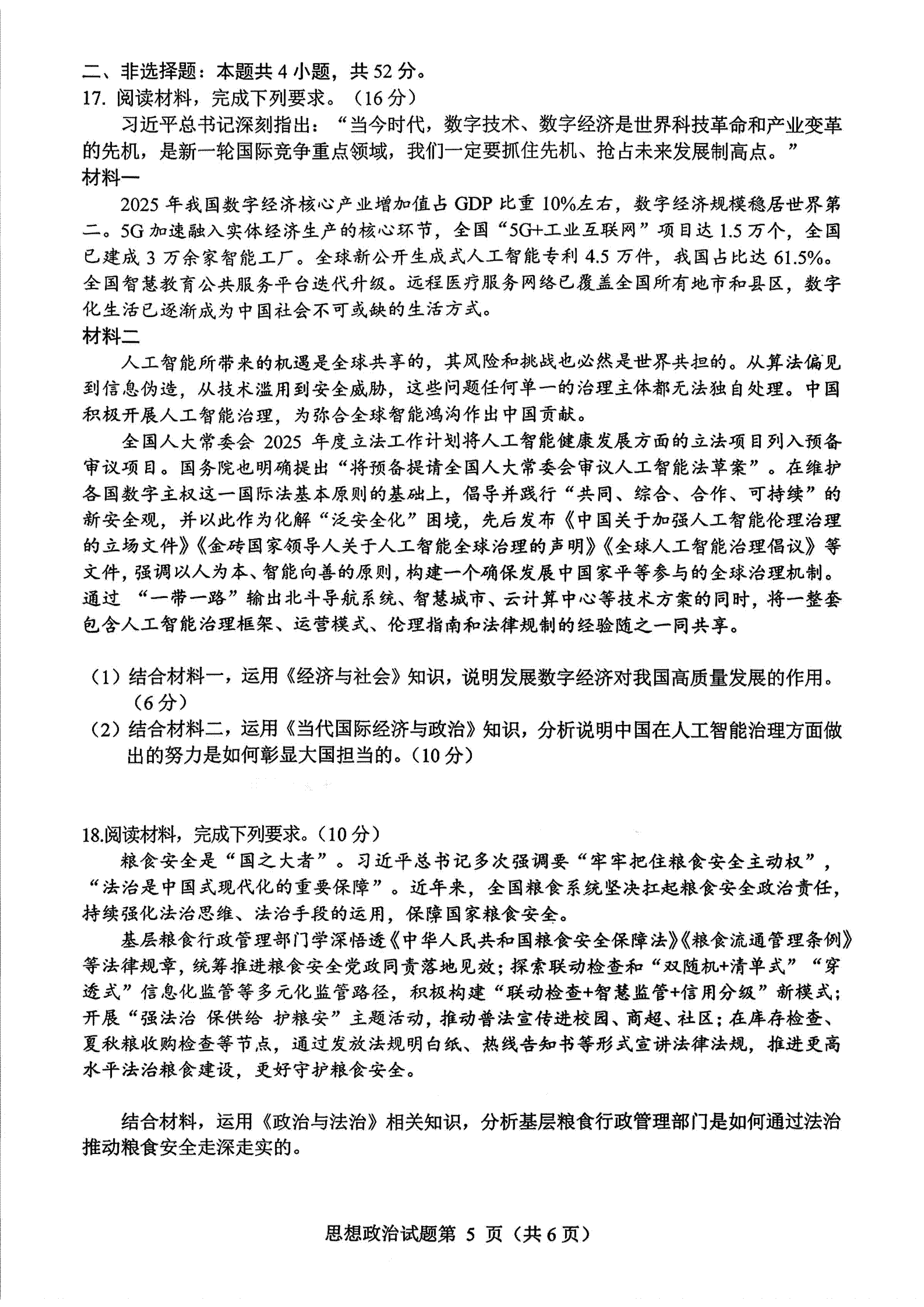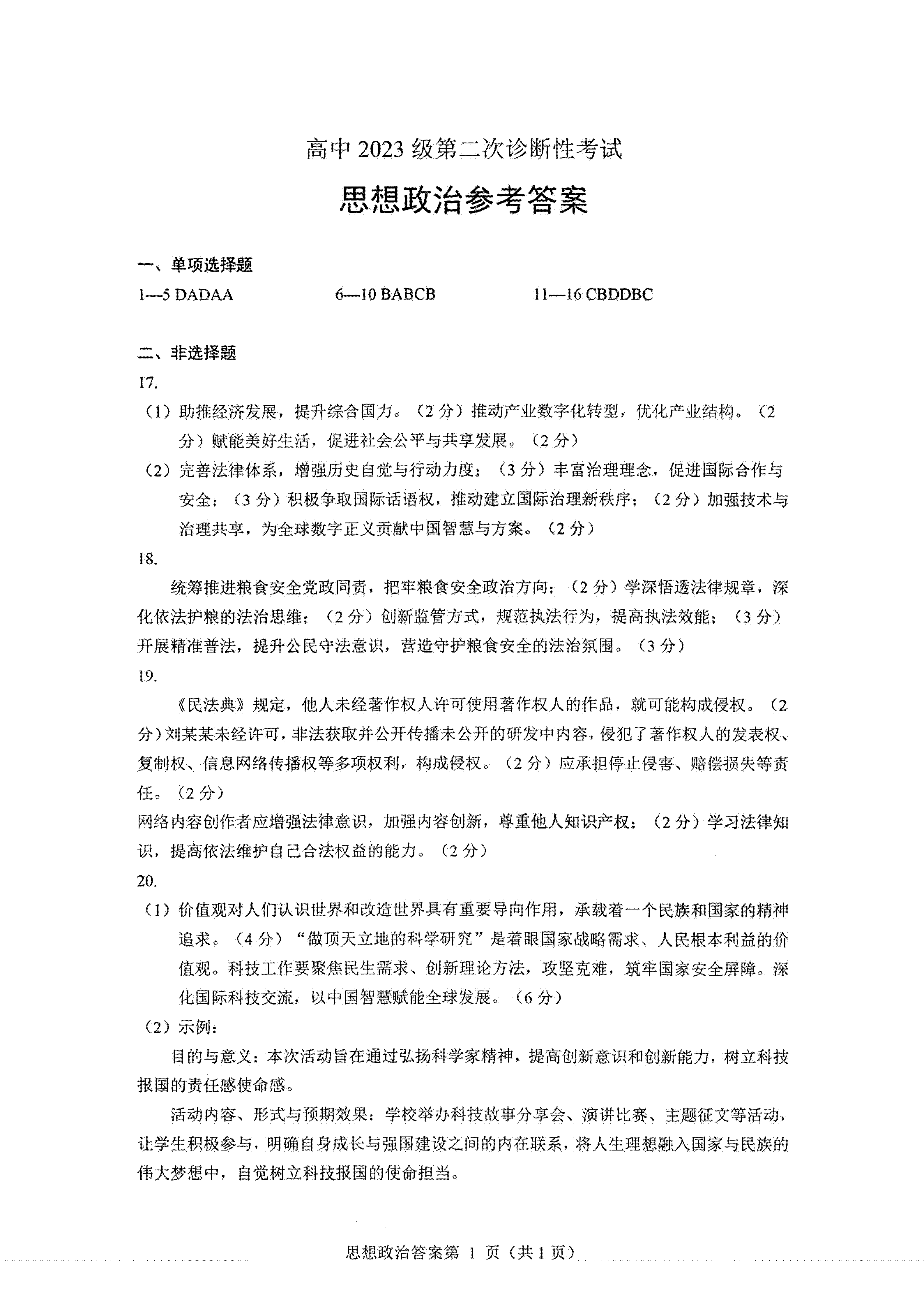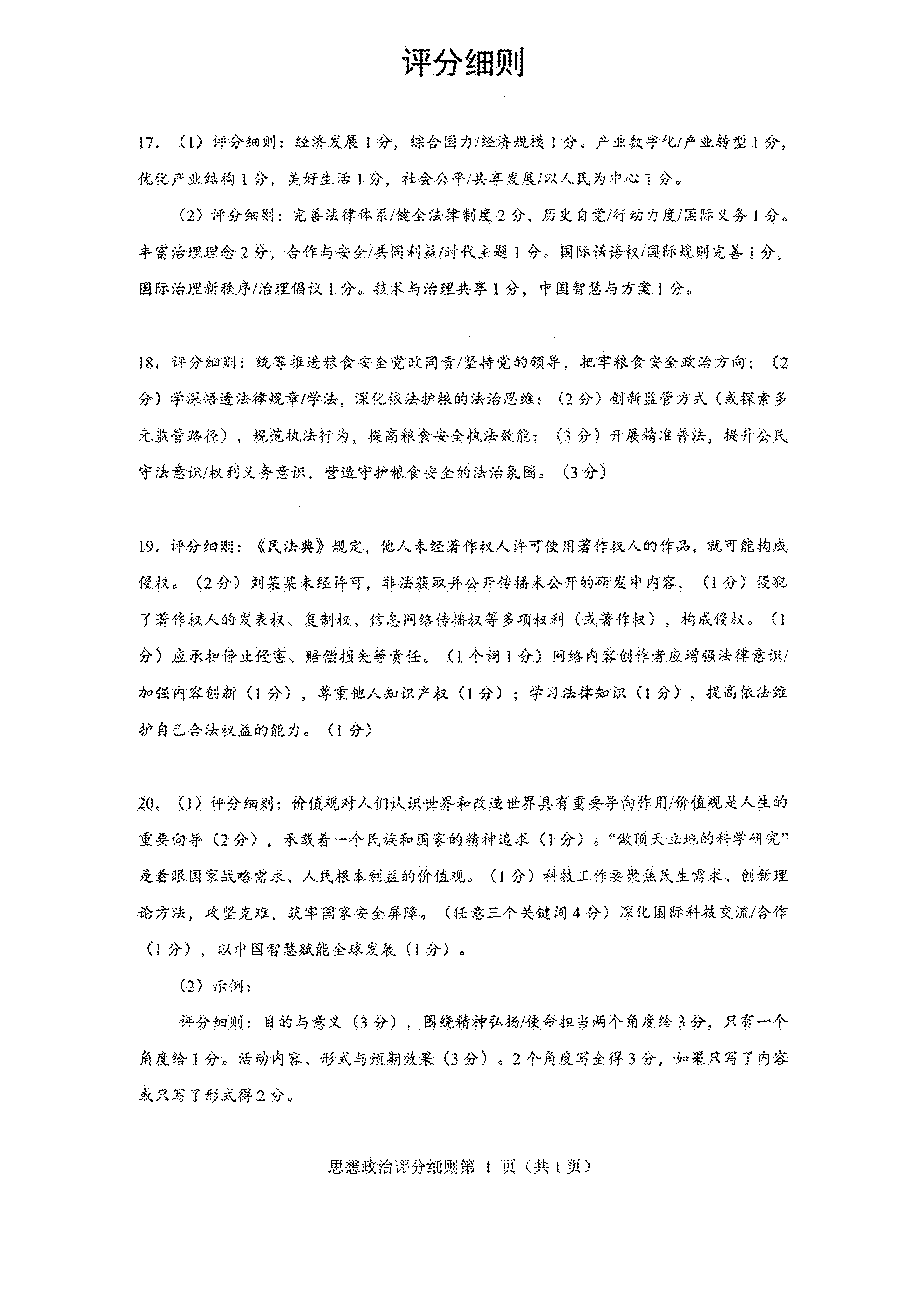 政治试卷及答案公布如下: