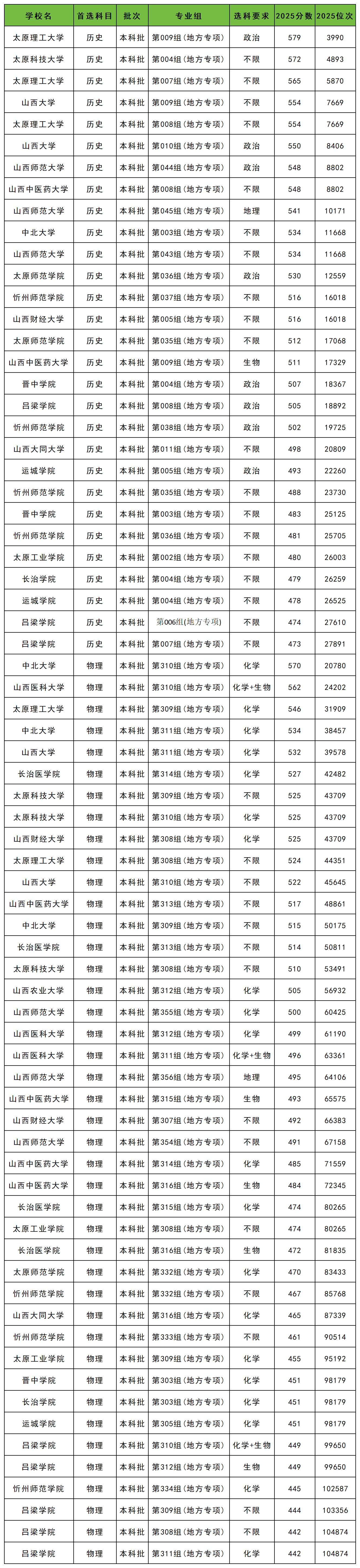 2025年山西地方专项计划最低录取分数线:历史类473分、物理类442分。