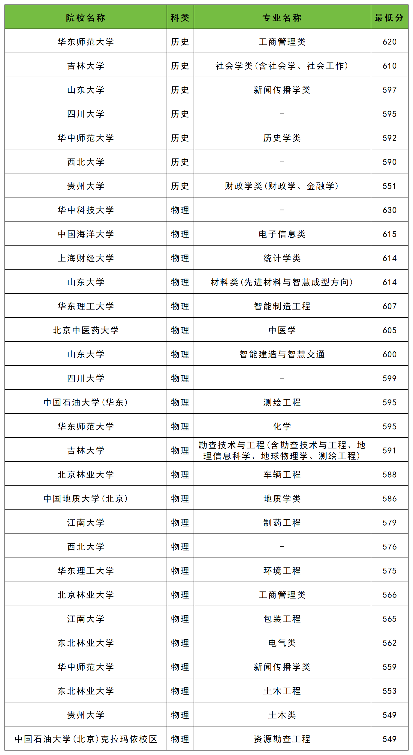 吉林大学:历史类610分、物理类591分。
