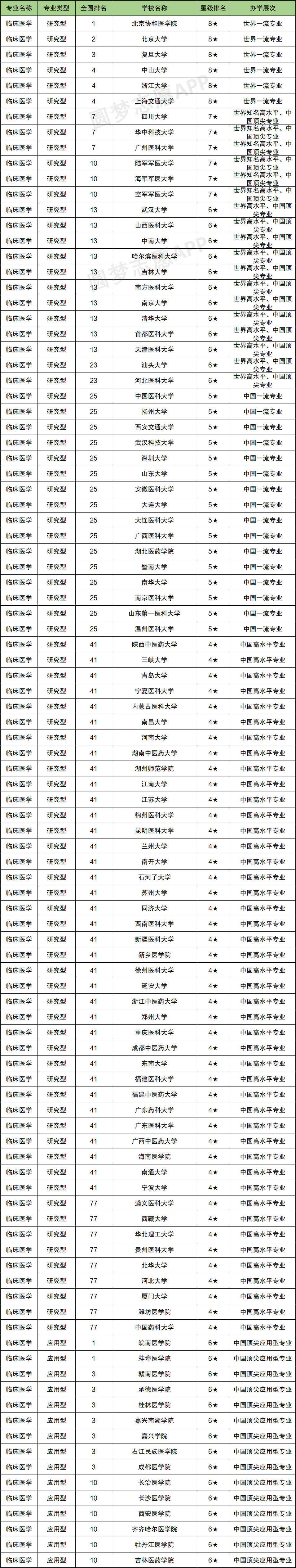 一、临床医学排名100强(2021临床医学排名榜)
