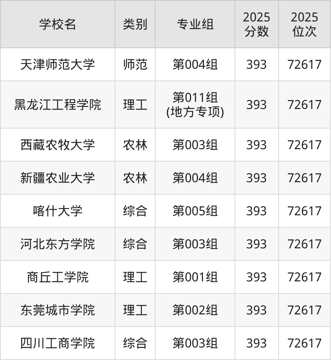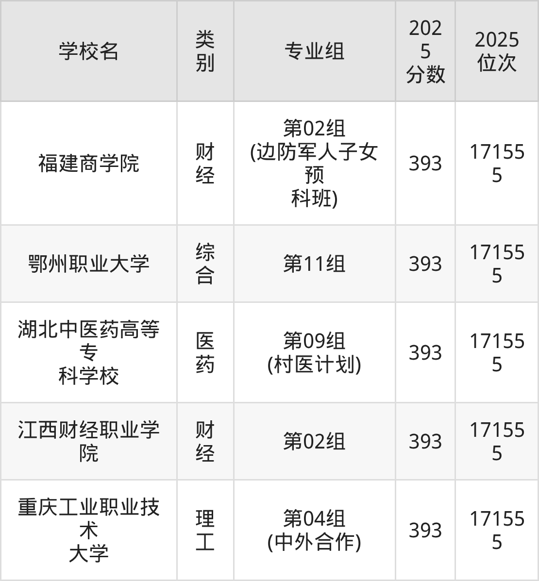 | 学校名 | 首选 科目 | 专业组 | 2025 分数 | 2025 位次 |