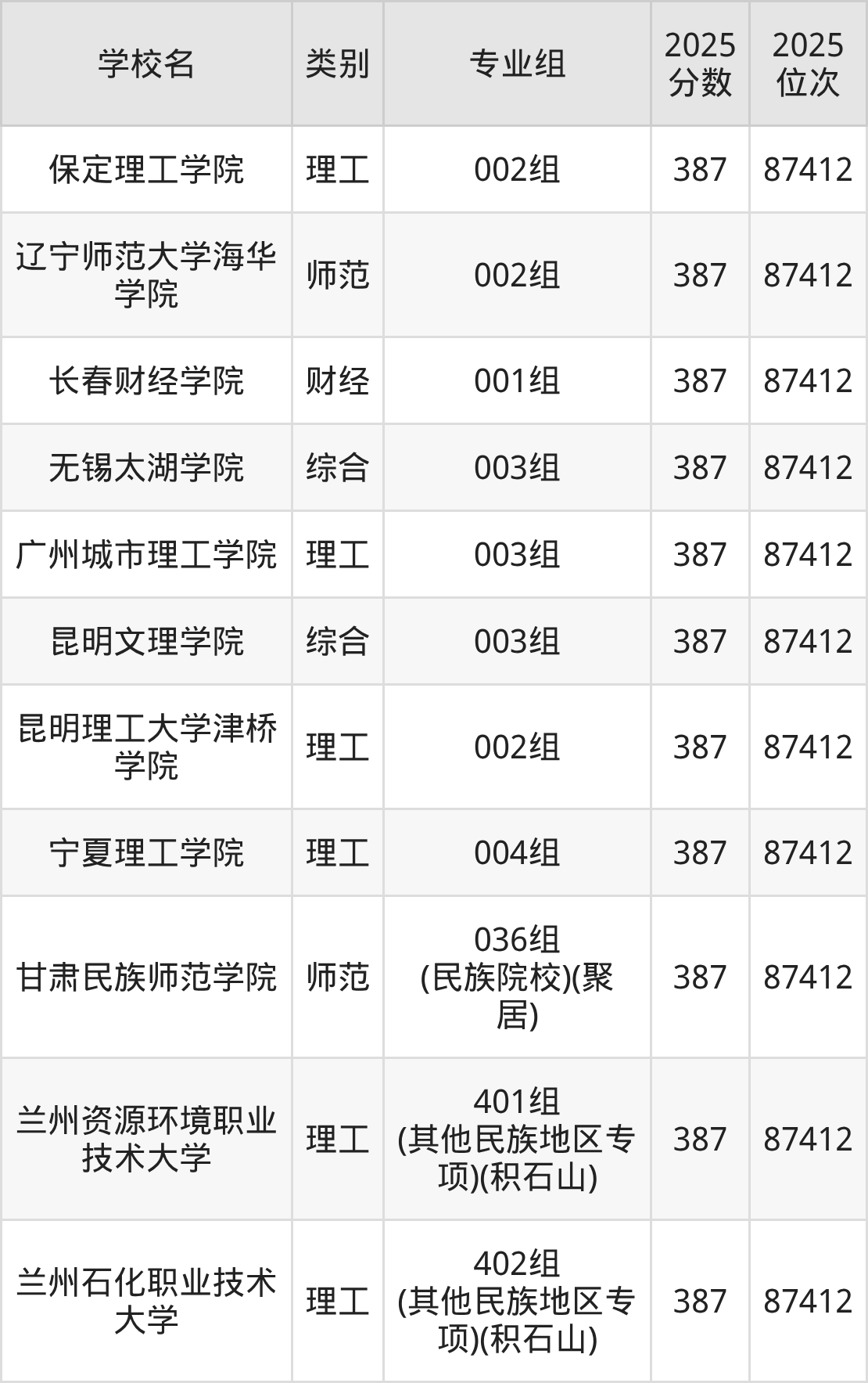 甘肃2025年物理类本科线为374分,仅比387分低13分,因此收分在387分左右的本科大学并不多,最高层次院校是双万计划大学。下面依旧根据专业组专业为男、女生推荐院校: