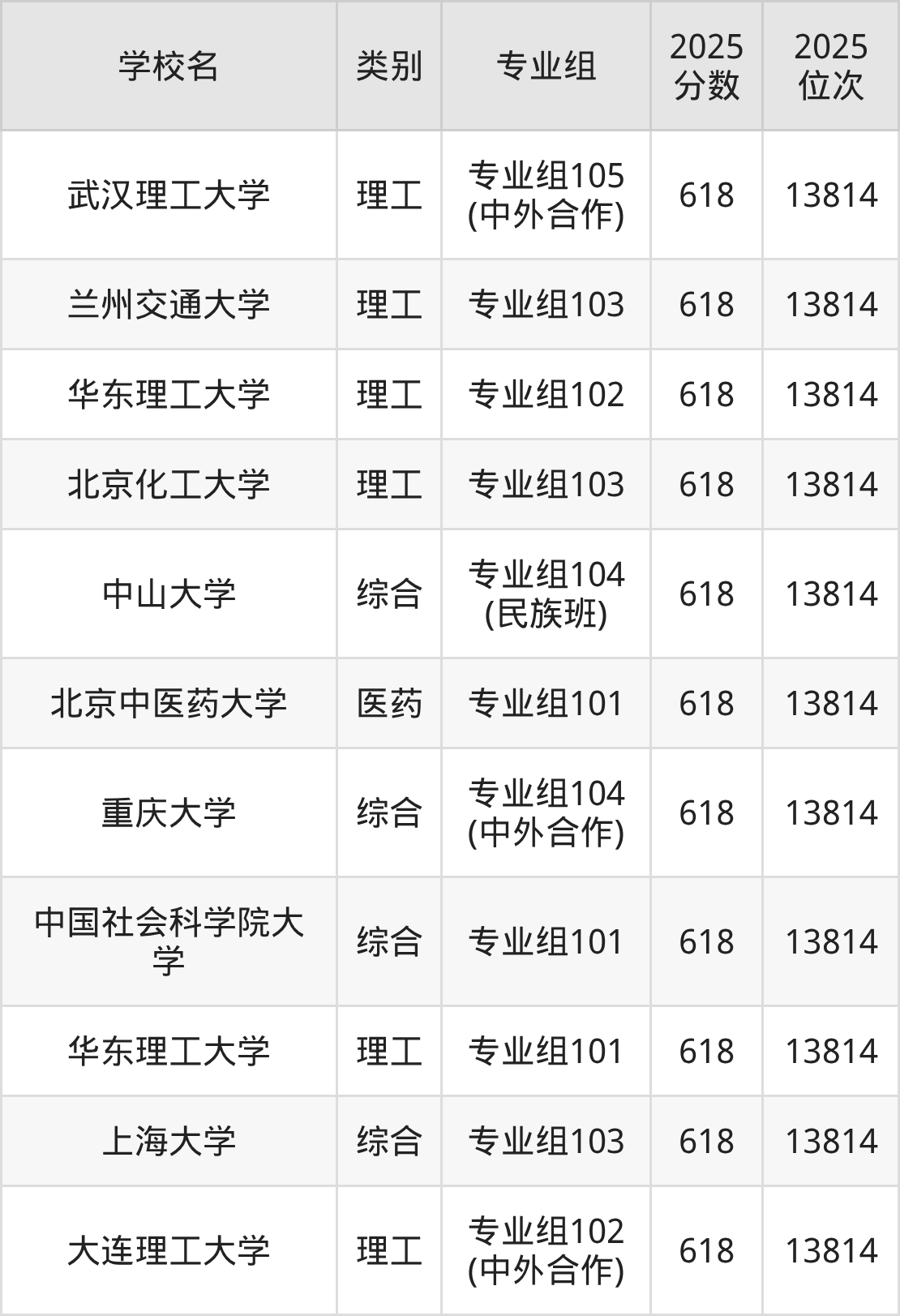 注:本文推荐院校筛选自2025年本科招生分数在618分左右的本科大学。新高考省份理科对应物理类招生大学。