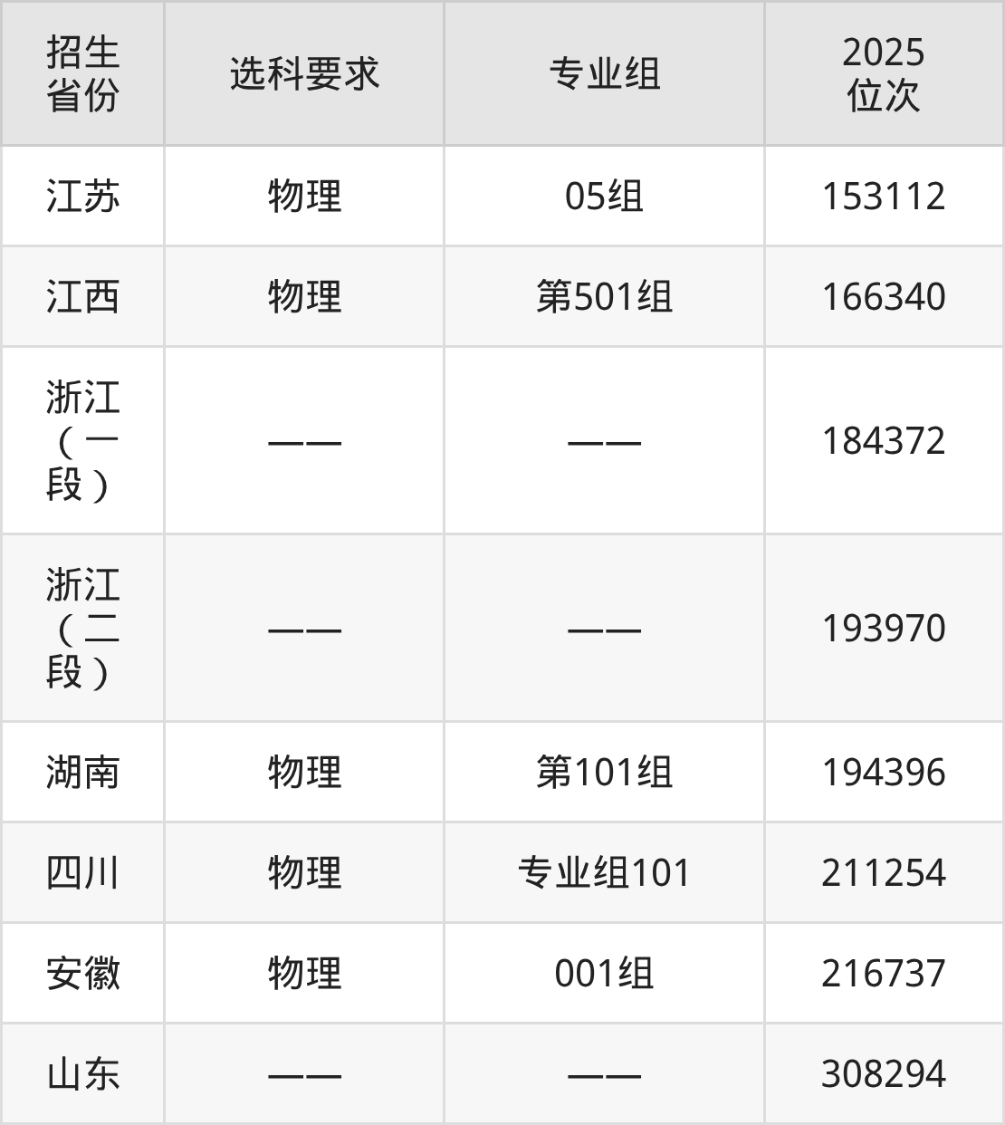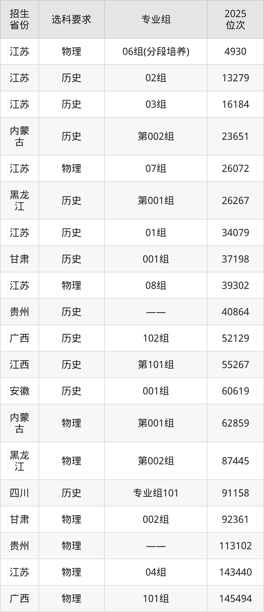 扬州职业技术大学2025年在全国各省的位次差异较大,最高位次是4930位(江苏物理类)、最低位次是308294位(山东)。各省具体位次请看下图: