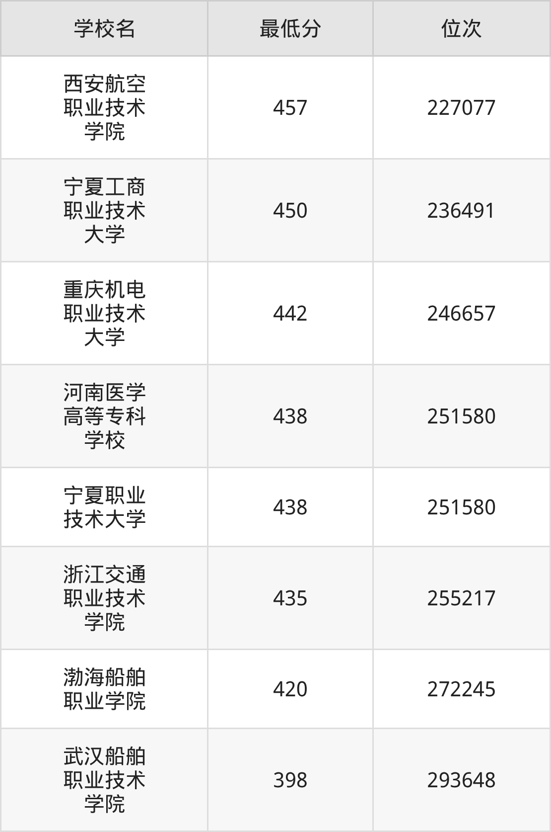 (6)西安航空职业技术学院:2025年定向士官分数线457分,位次是227077名。