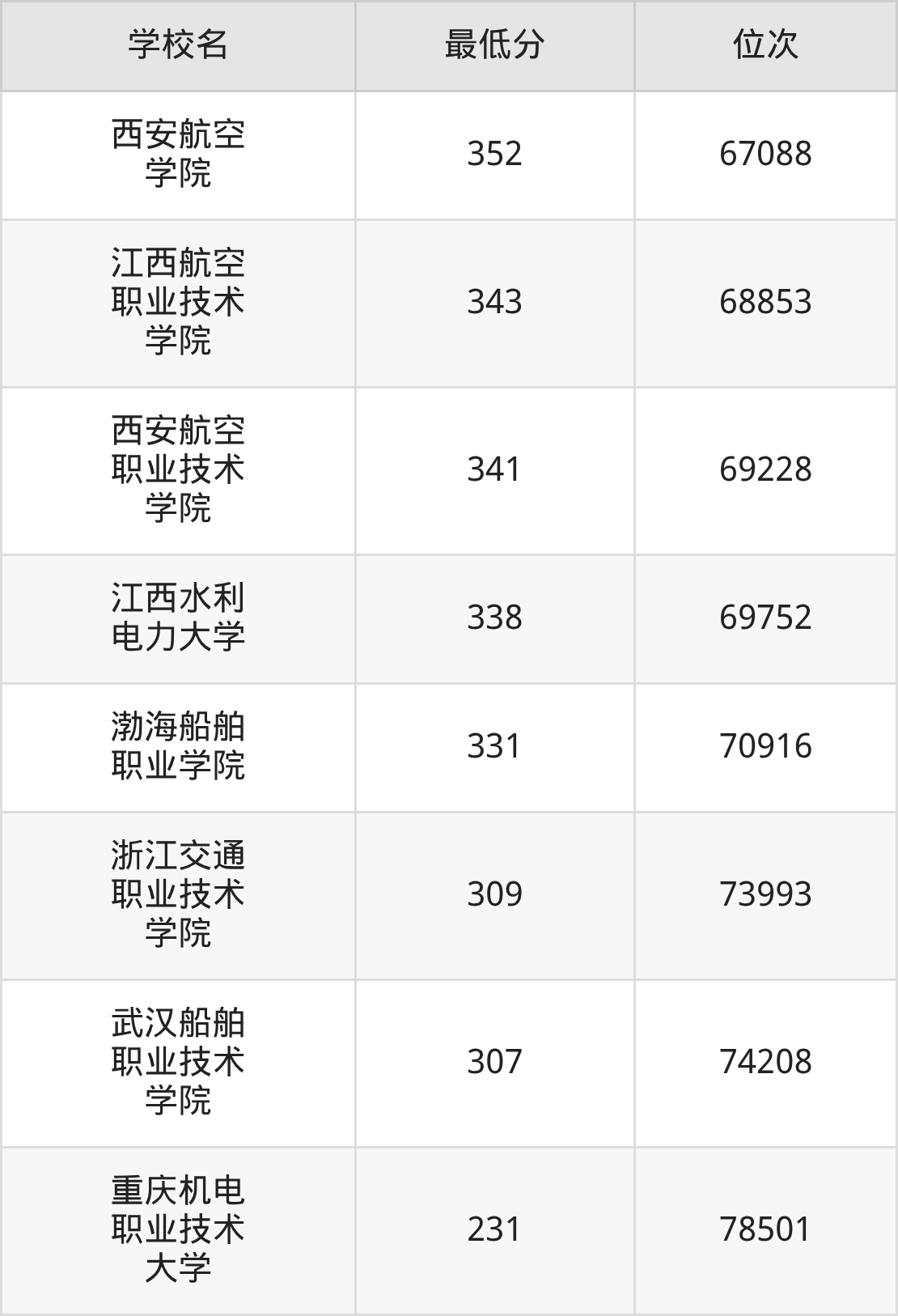 (6)西安航空学院:2025年定向士官分数线352分,位次是67088名。