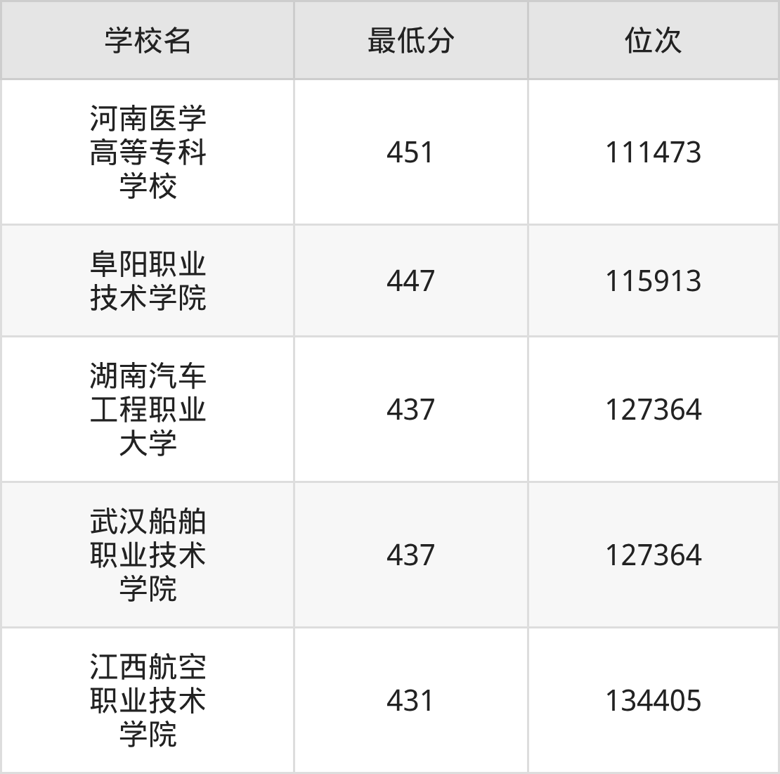 (1)河南医学高等专科学校:2025年定向士官分数线451分,位次是111473名。