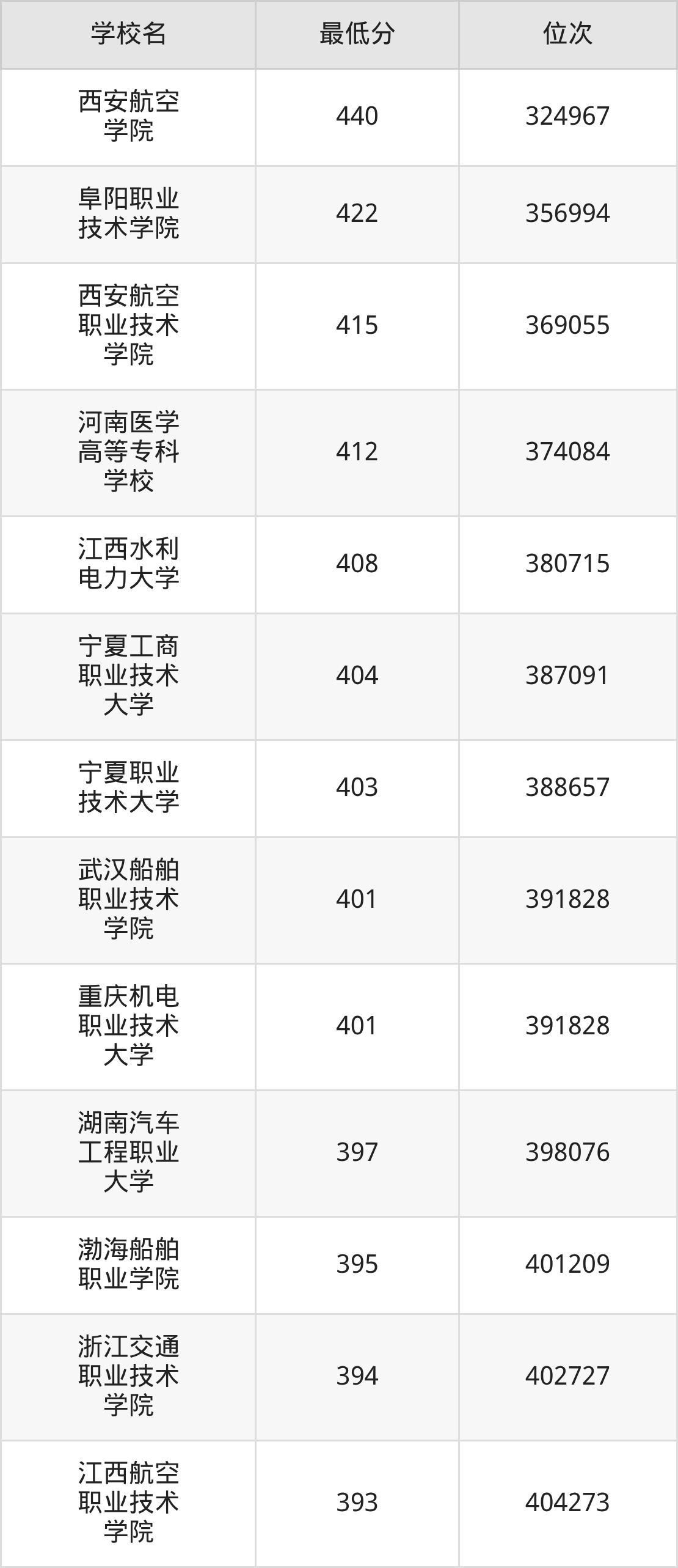 (3)宁夏职业技术大学:2025年定向士官分数线403分,位次是388657名。