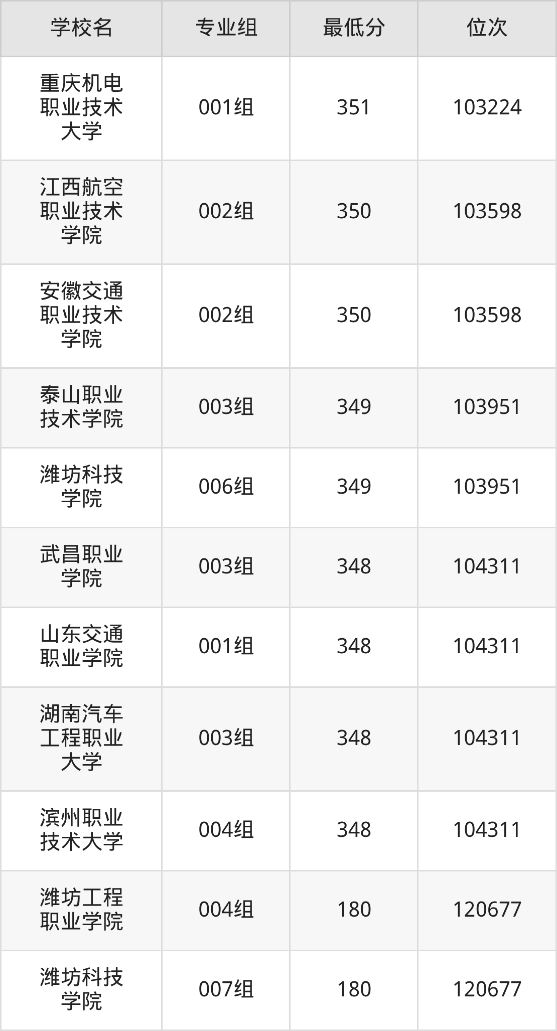 (3)山东交通职业学院:2025年定向士官分数线348分,位次是104311名,招生专业组有1个,最低为001组。