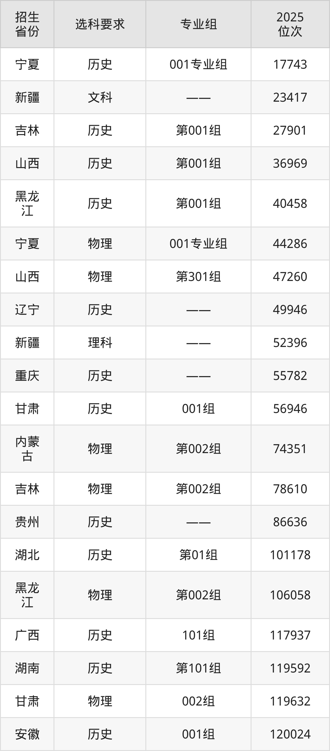 河北旅游职业学院2025年在全国各省的位次差异较大,最高位次是17743位(宁夏历史类)、最低位次是544513位(山东)。各省具体位次请看下图: