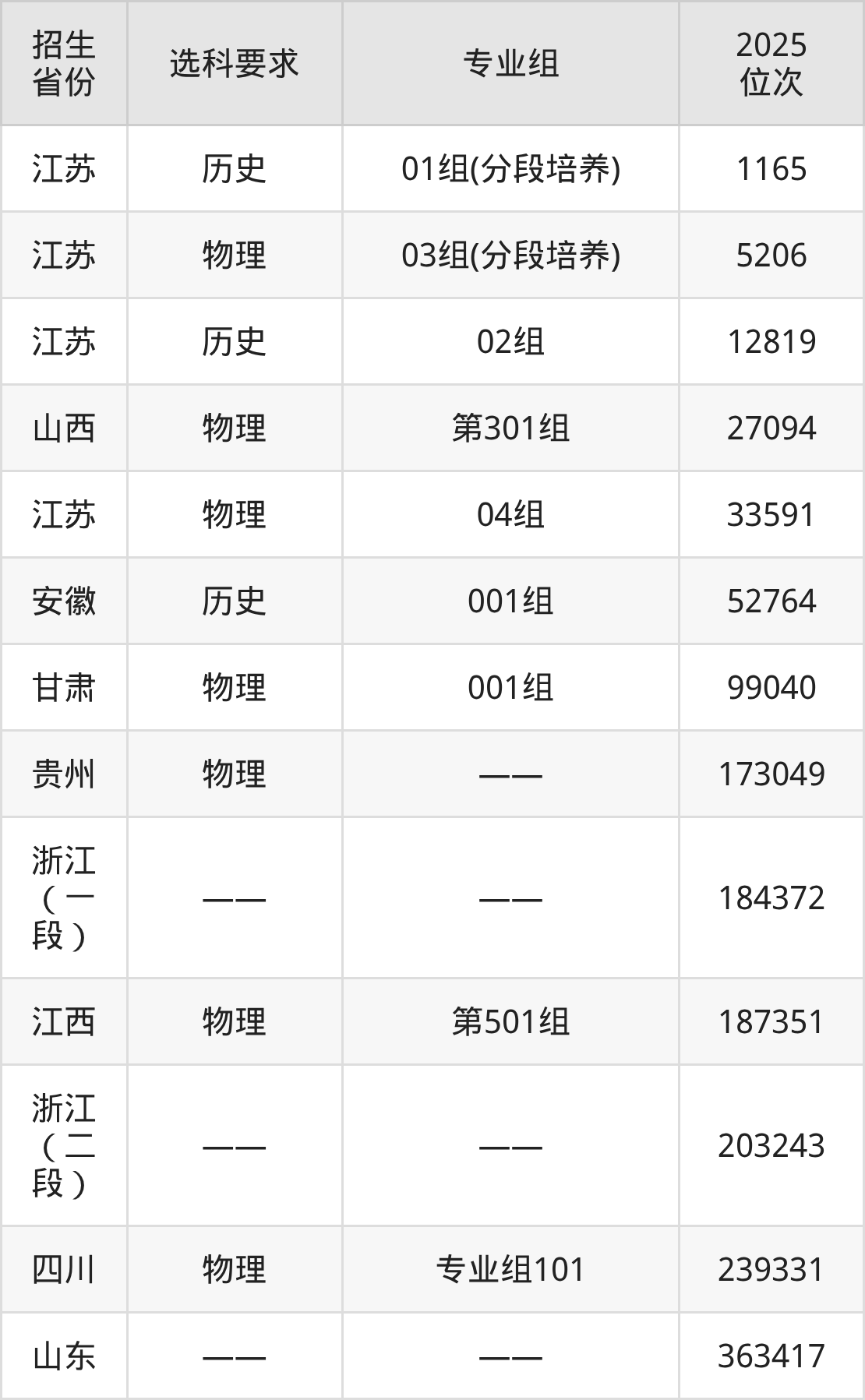 南京交通职业技术学院2025年在全国各省的位次差异较大,最高位次是1165位(江苏历史类)、最低位次是363417位(山东)。各省具体位次请看下图: