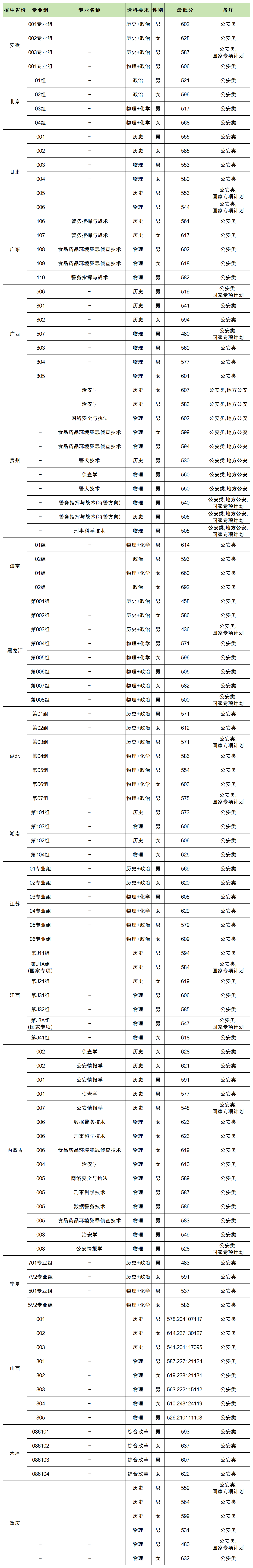 该校基本只在各省的本科提前批进行招生,具体的分数线因省份、性别、科类/首选科目而异,我们就从这些角度来看看不同省份、不同性别、不同科目下多少分能上南京警察学院。