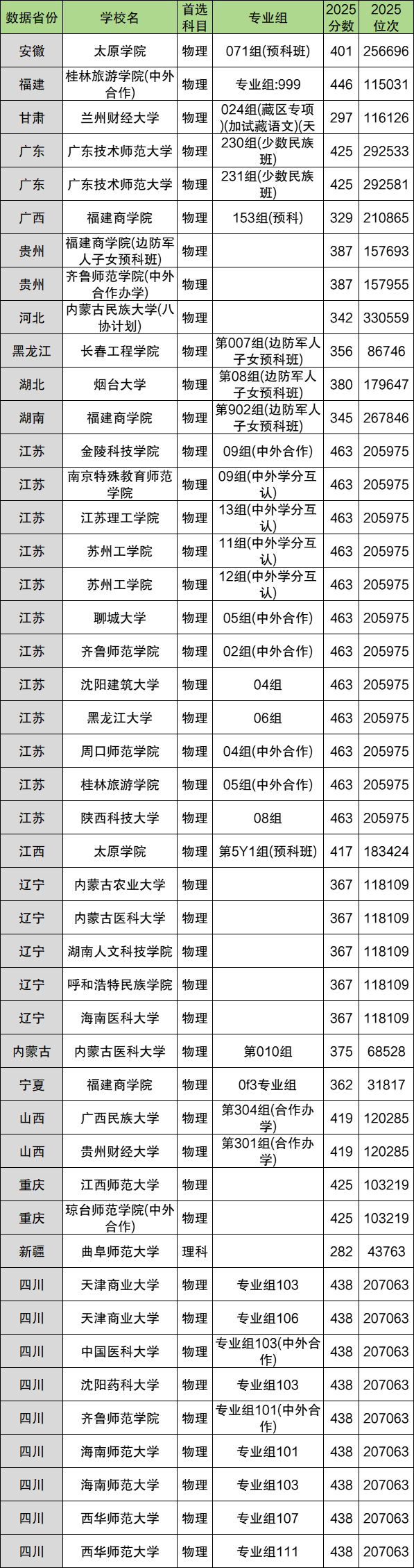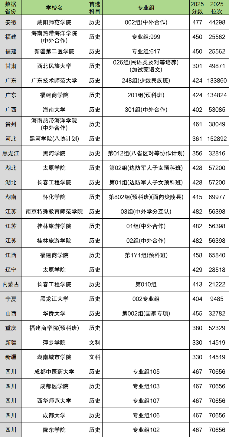 福建:海南热带海洋学院(中外合作)和新疆第二医学院,2025年最低450分录取;