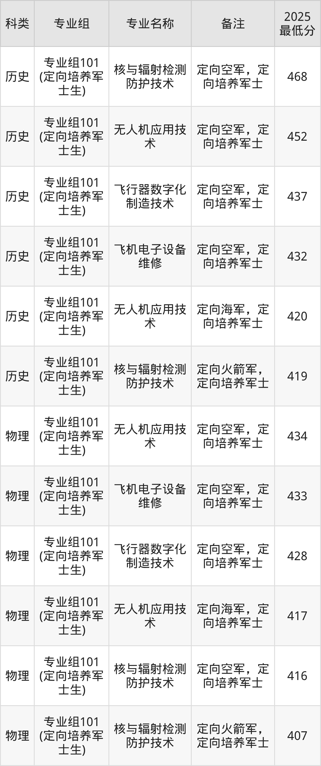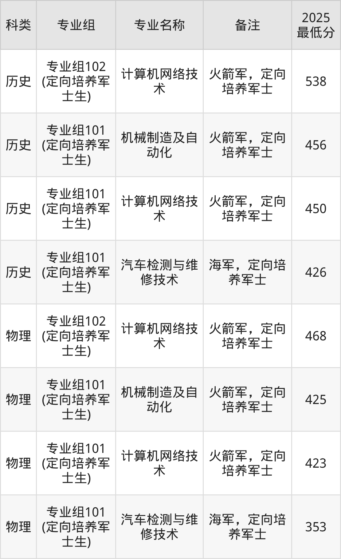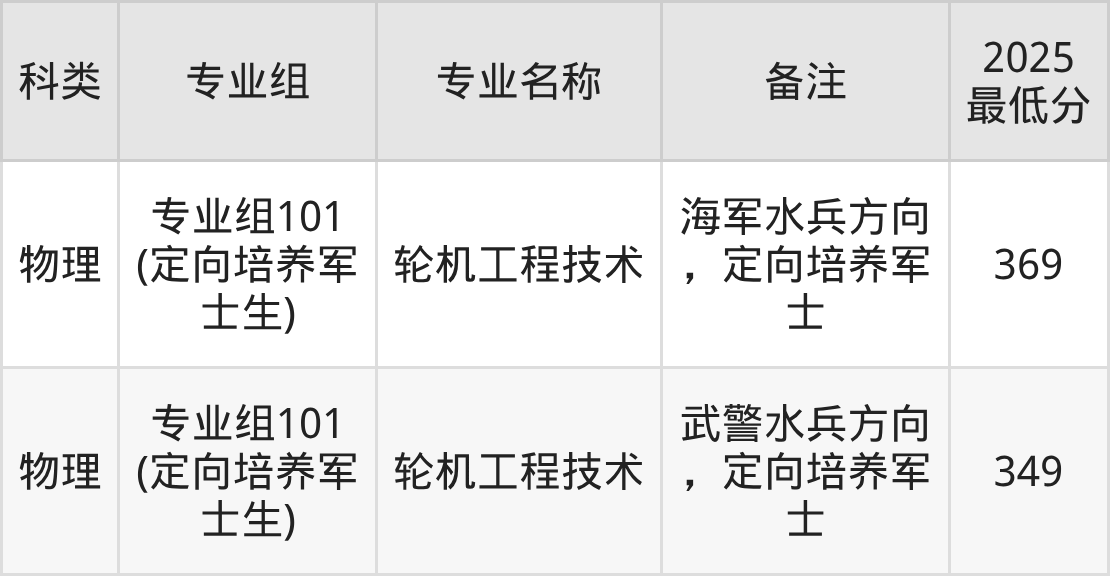 下面是各专业最低分: