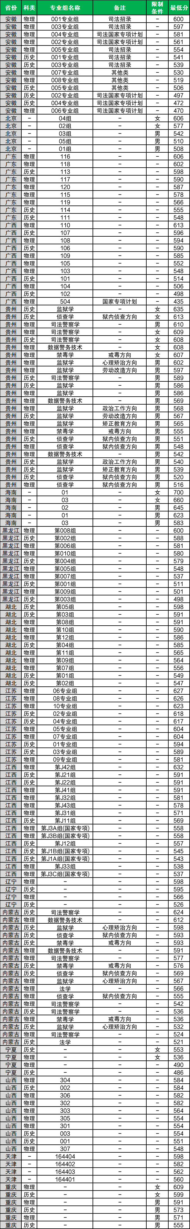 因为2026届考生在填报志愿时只能查看往年分数线数据,这里就整理出2025年中央司法警官学院在部分地区的分数线作为参考: