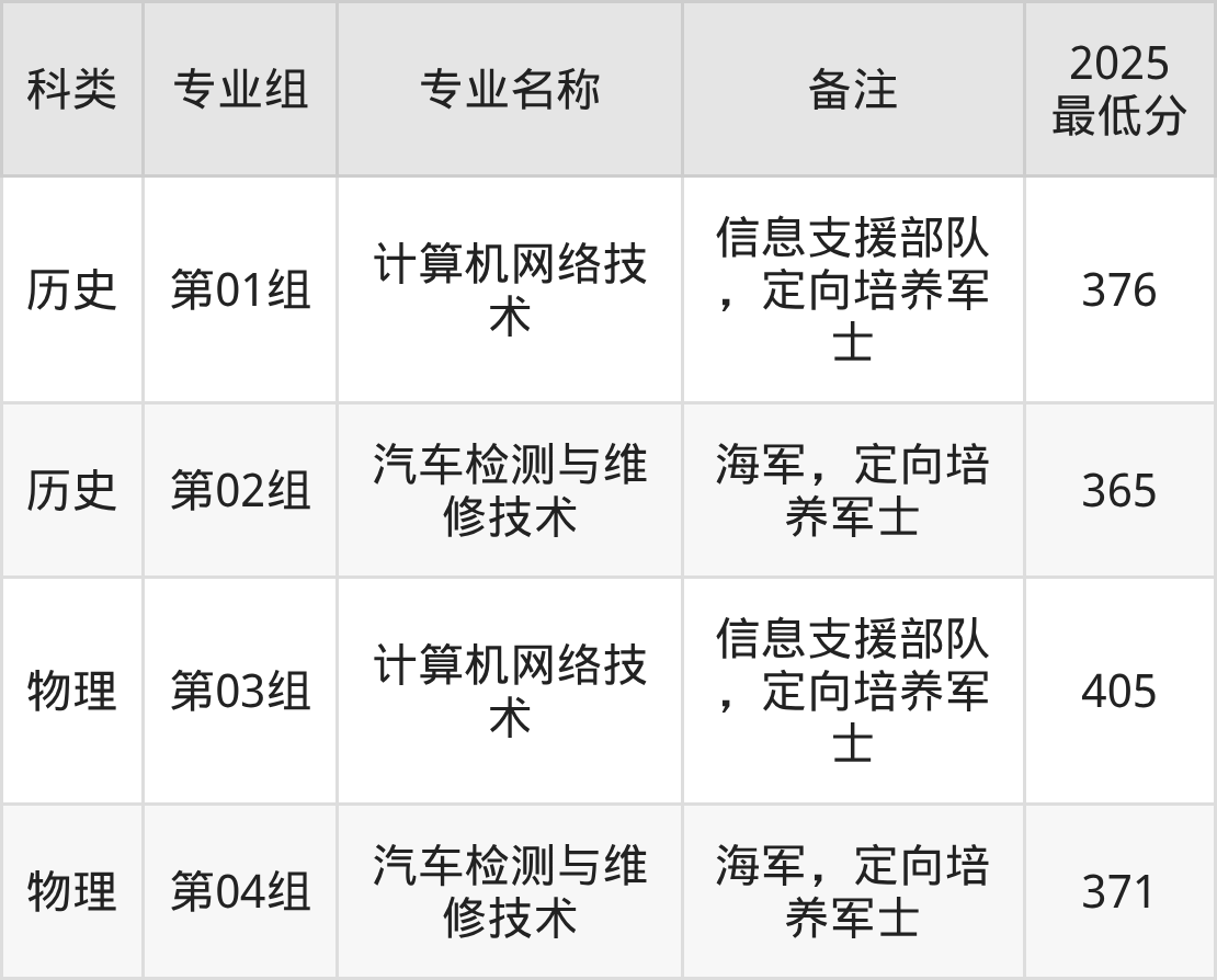 参考2025年招录数据,湖北定向士官学校分数线范围在363分-405分之间,其中江西航空职业技术学院最低分373分、延安职业技术学院最低分376分等。