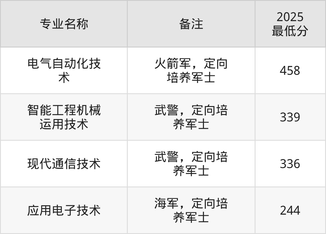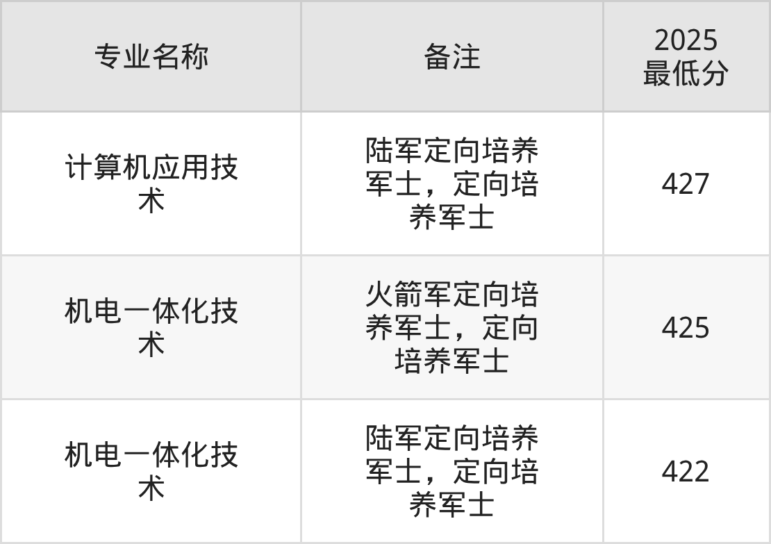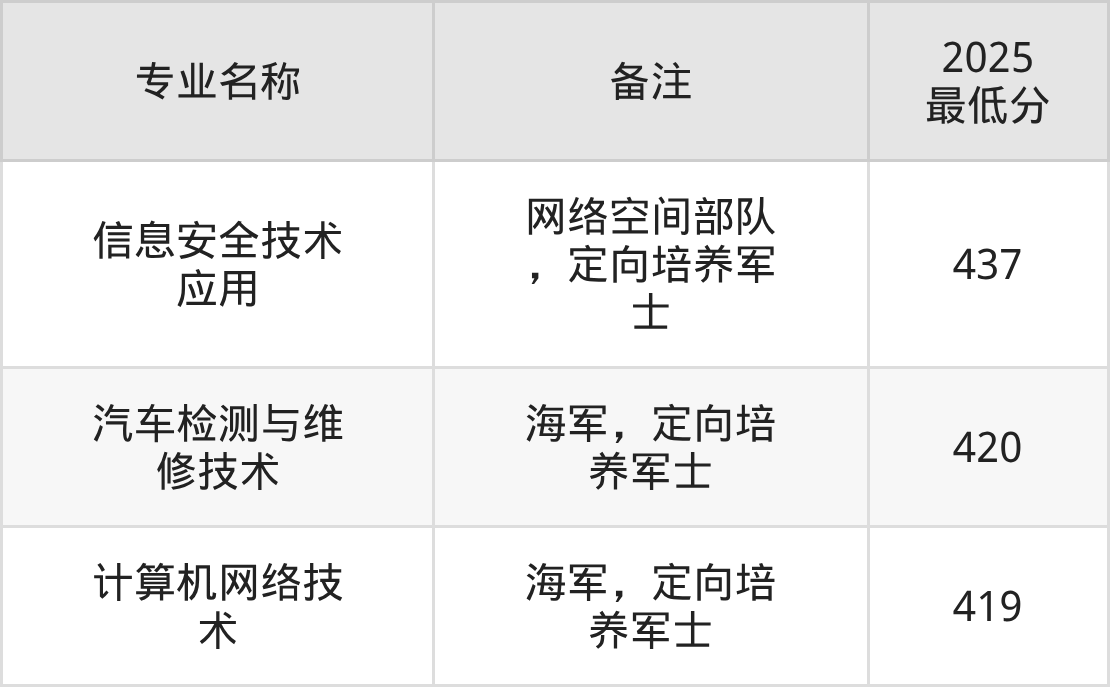 报考定向培养军士的考生,须为2026年在我省参加夏季高考的高级中等教育学校毕业生,文化课统考成绩不低于240分,未婚,年龄不超过20周岁,志愿至少服现役满5年,其政治和身体条件按照征集义务兵的规定执行。