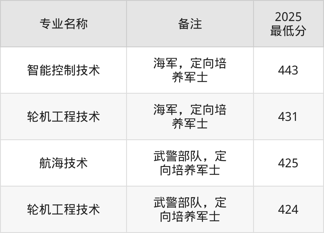 (4)渤海船舶职业学院:最低392分-421分