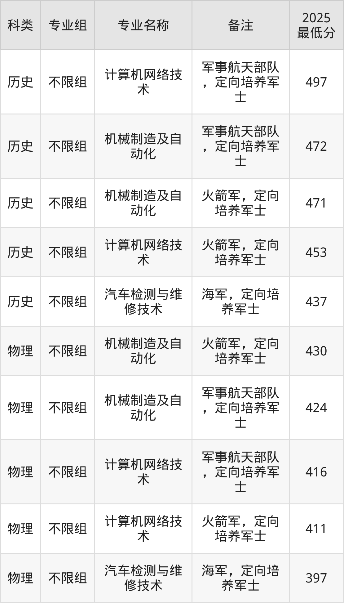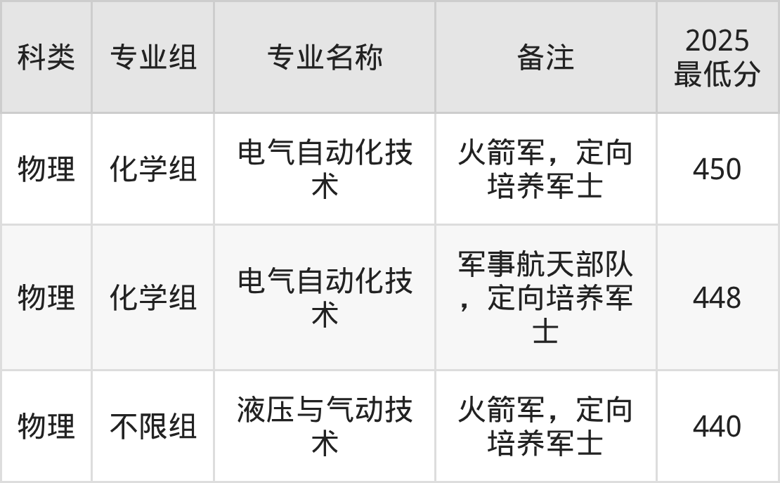 下面是各专业最低分: