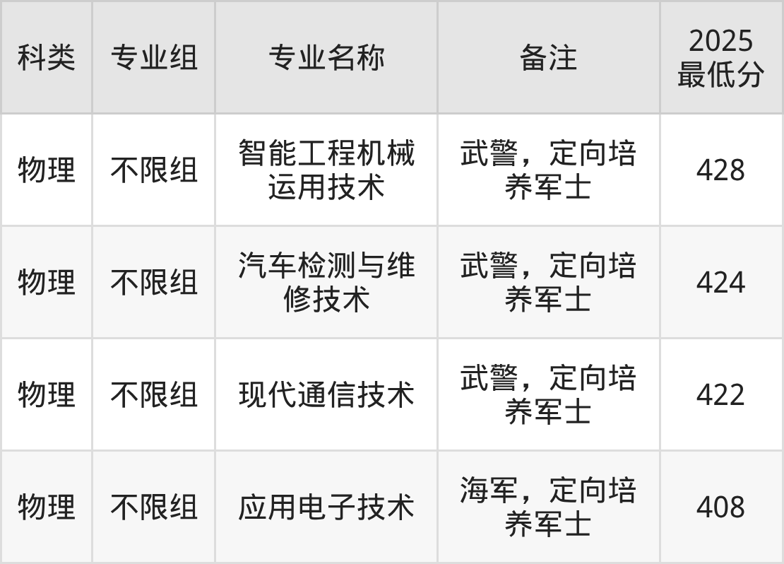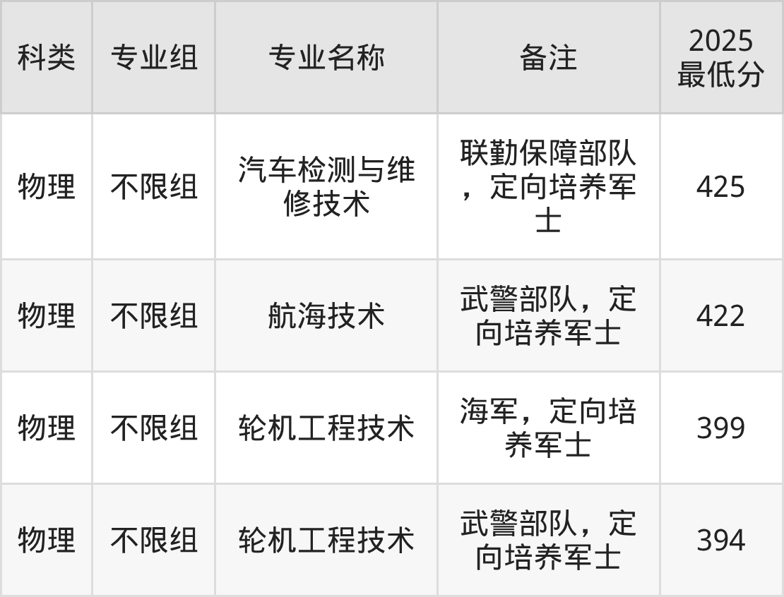 参考2025年招录数据,河南定向士官学校分数线范围在394分-497分之间,其中河南医学高等专科学校最低分412分、湖南汽车工程职业大学最低分397分等。