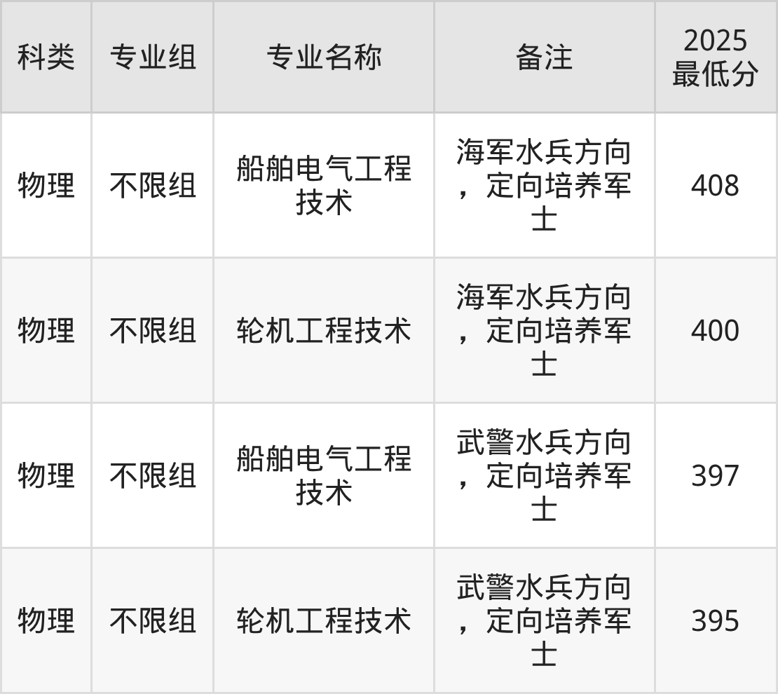 (5)渤海船舶职业学院:最低395分-408分