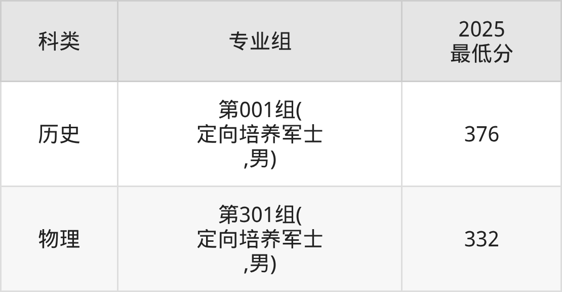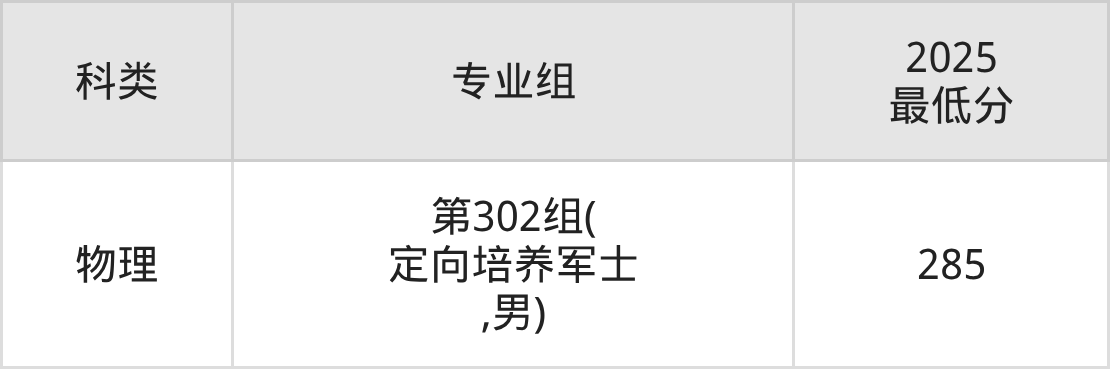 3、录取分数线:2025年分数范围在285分-412分