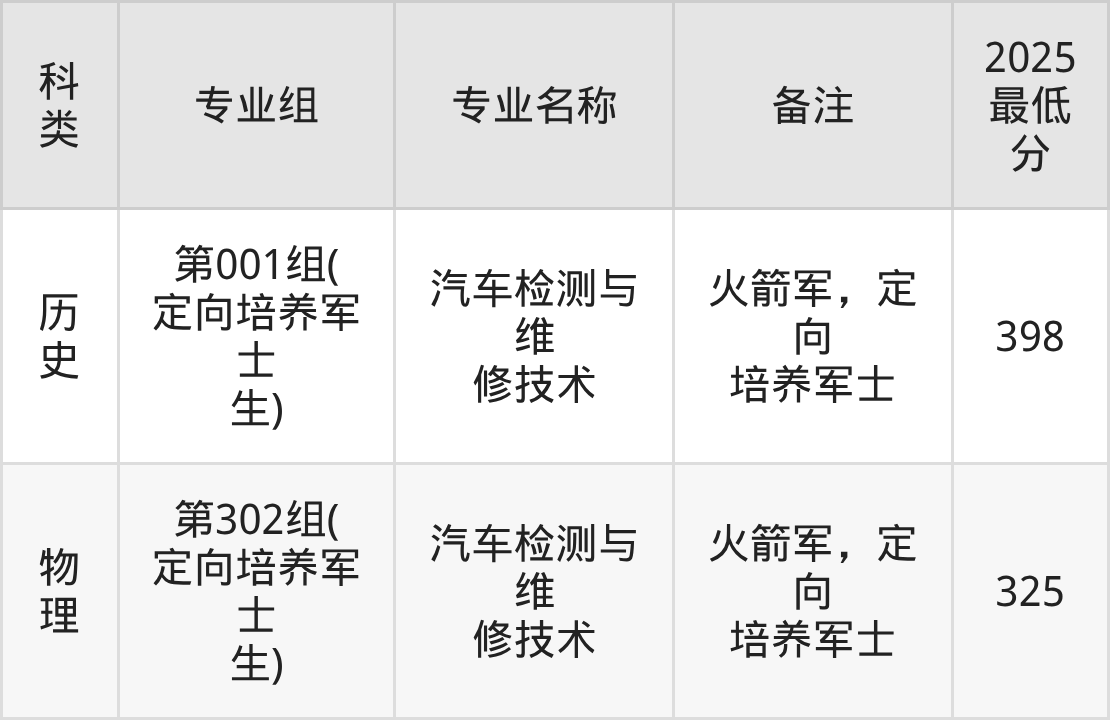 参考2025年招录数据,山西定向士官学校分数线范围在285分-412分之间,其中武汉船舶职业技术学院最低分332分、湖南汽车工程职业大学最低分325分等。