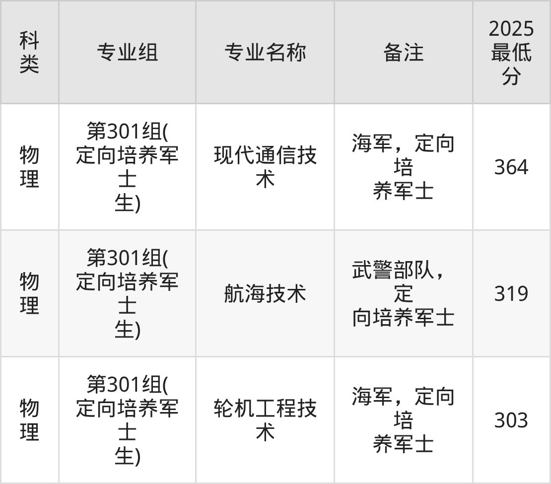 下面是各专业组最低分: