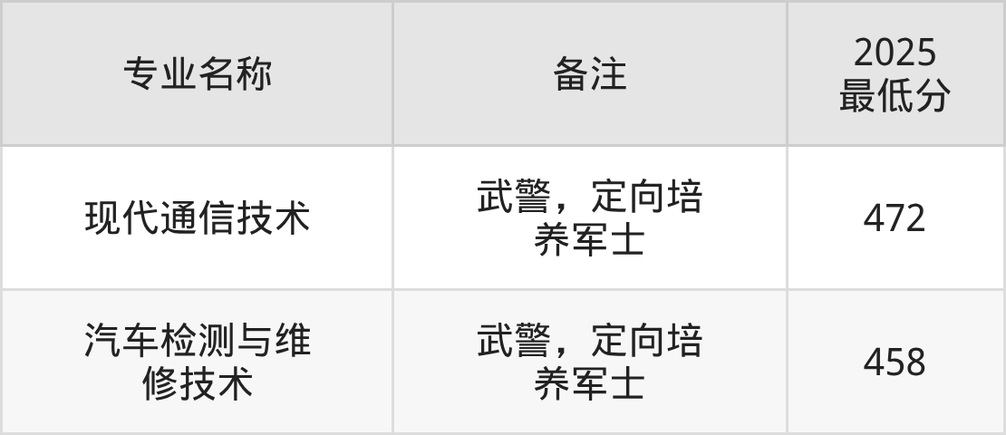 参考2025年招录数据,浙江定向士官学校分数线范围在335分-539分之间,其中江西水利电力大学最低分458分、湖南汽车工程职业大学最低分409分等。