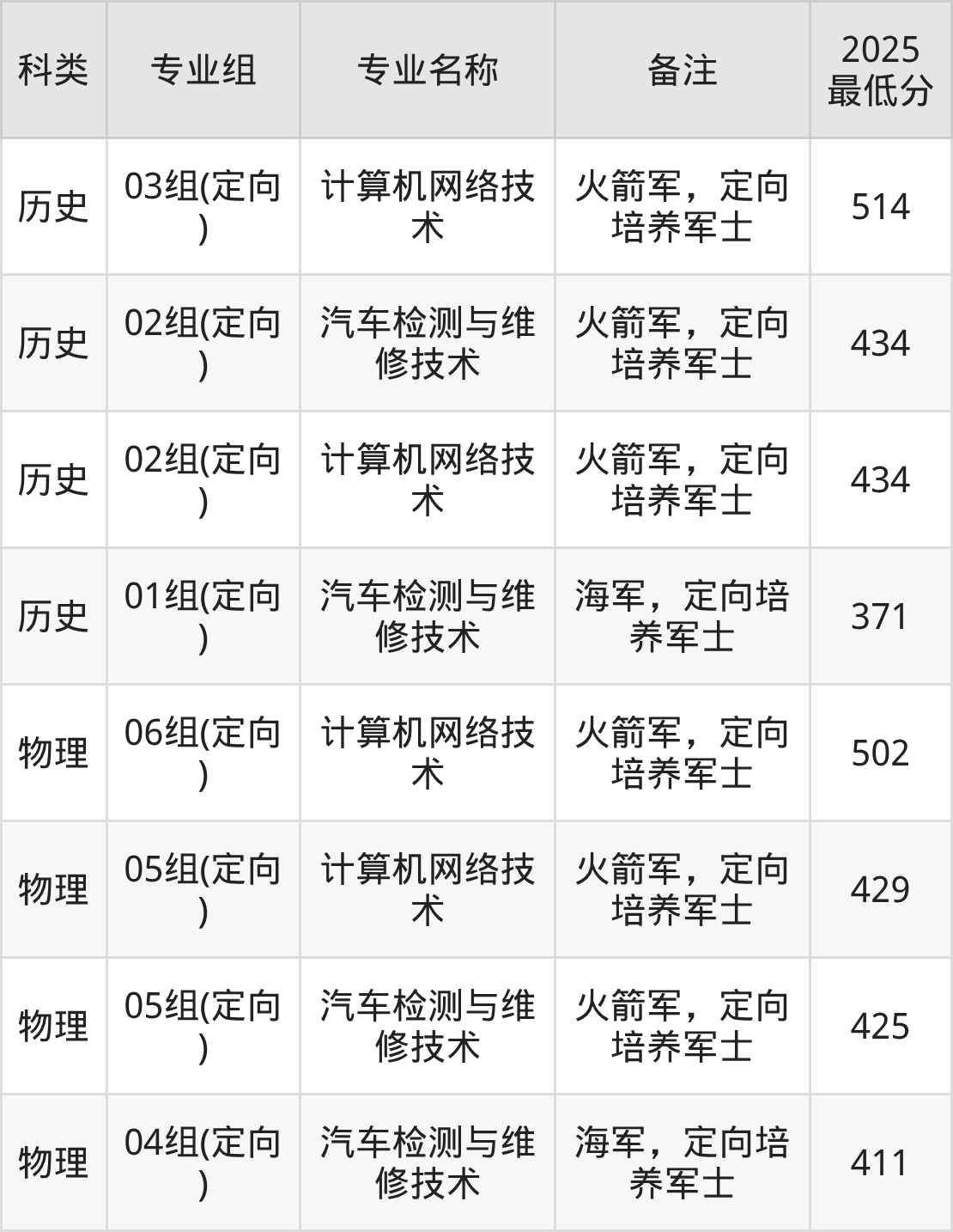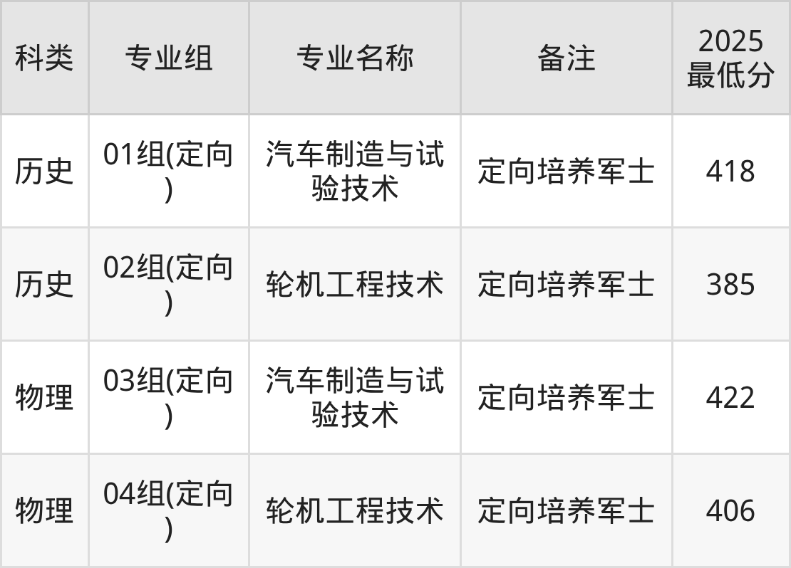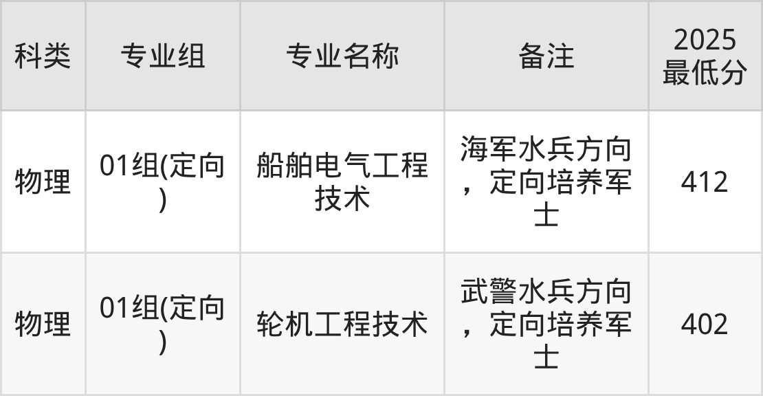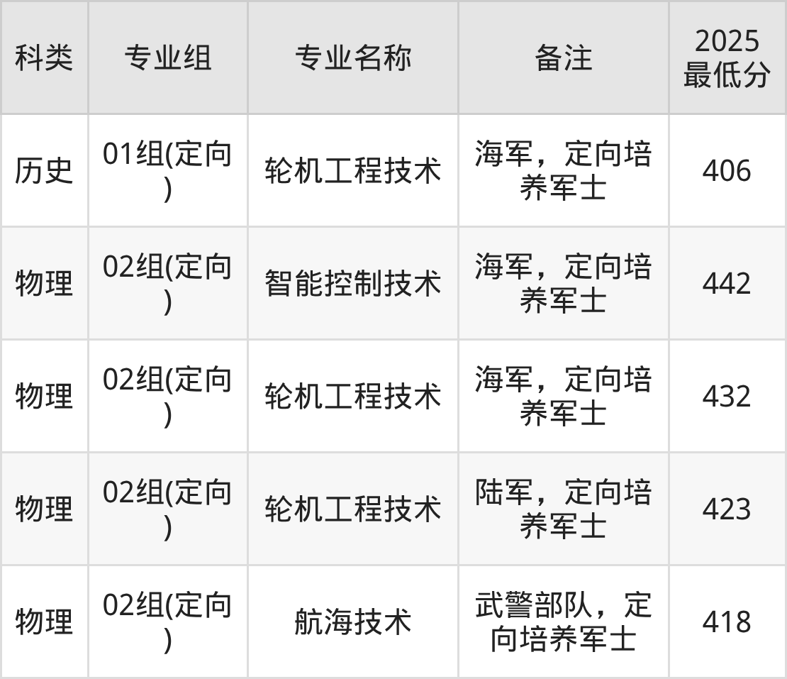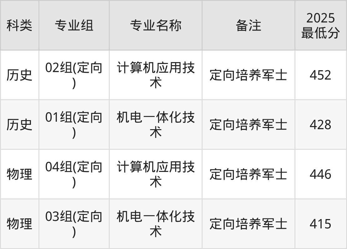 招生批次:定向培养军士