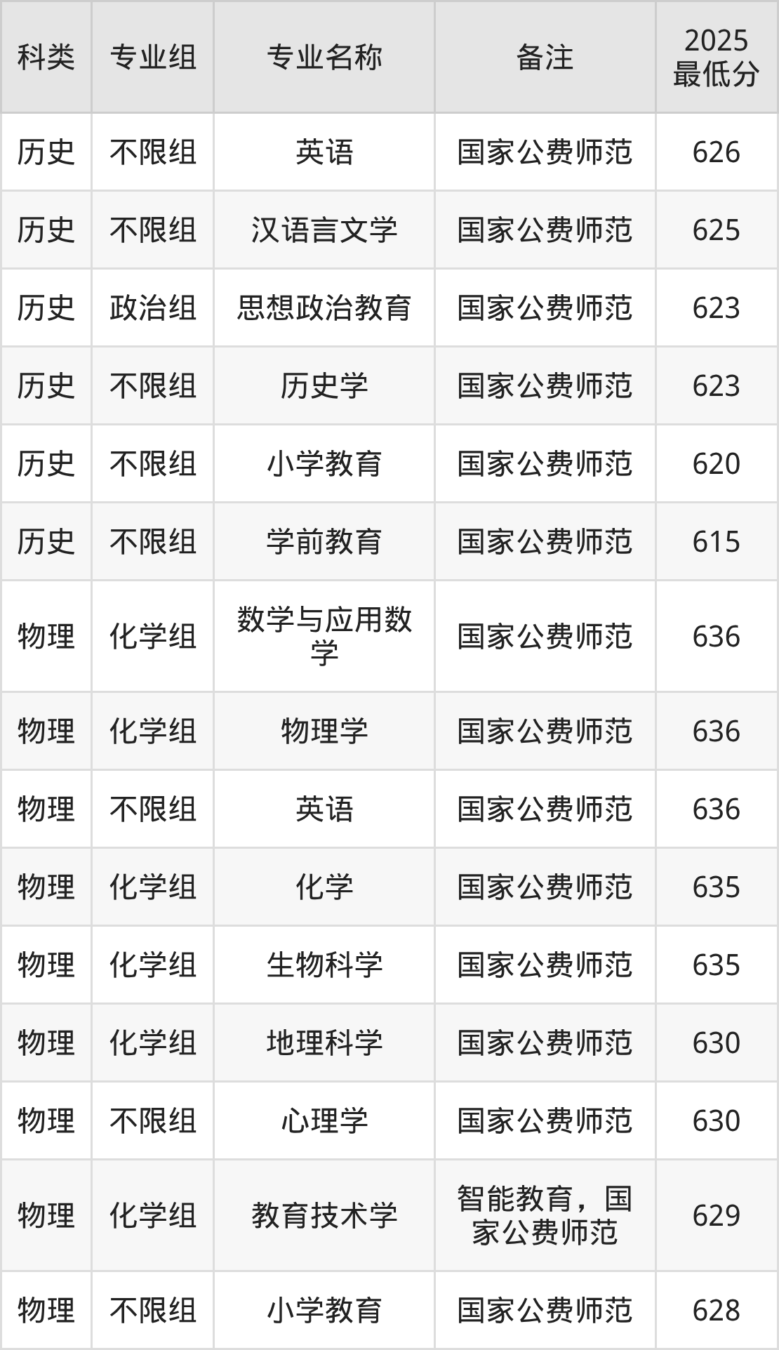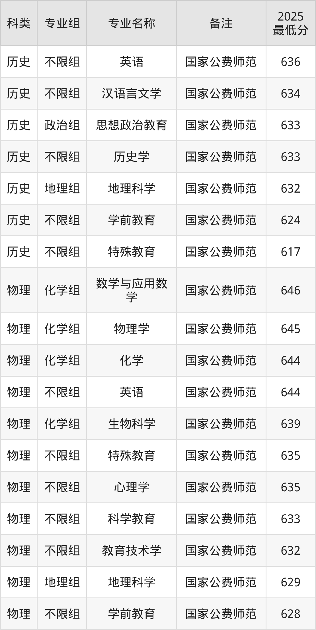 (1)东北师范大学:最低615分-636分