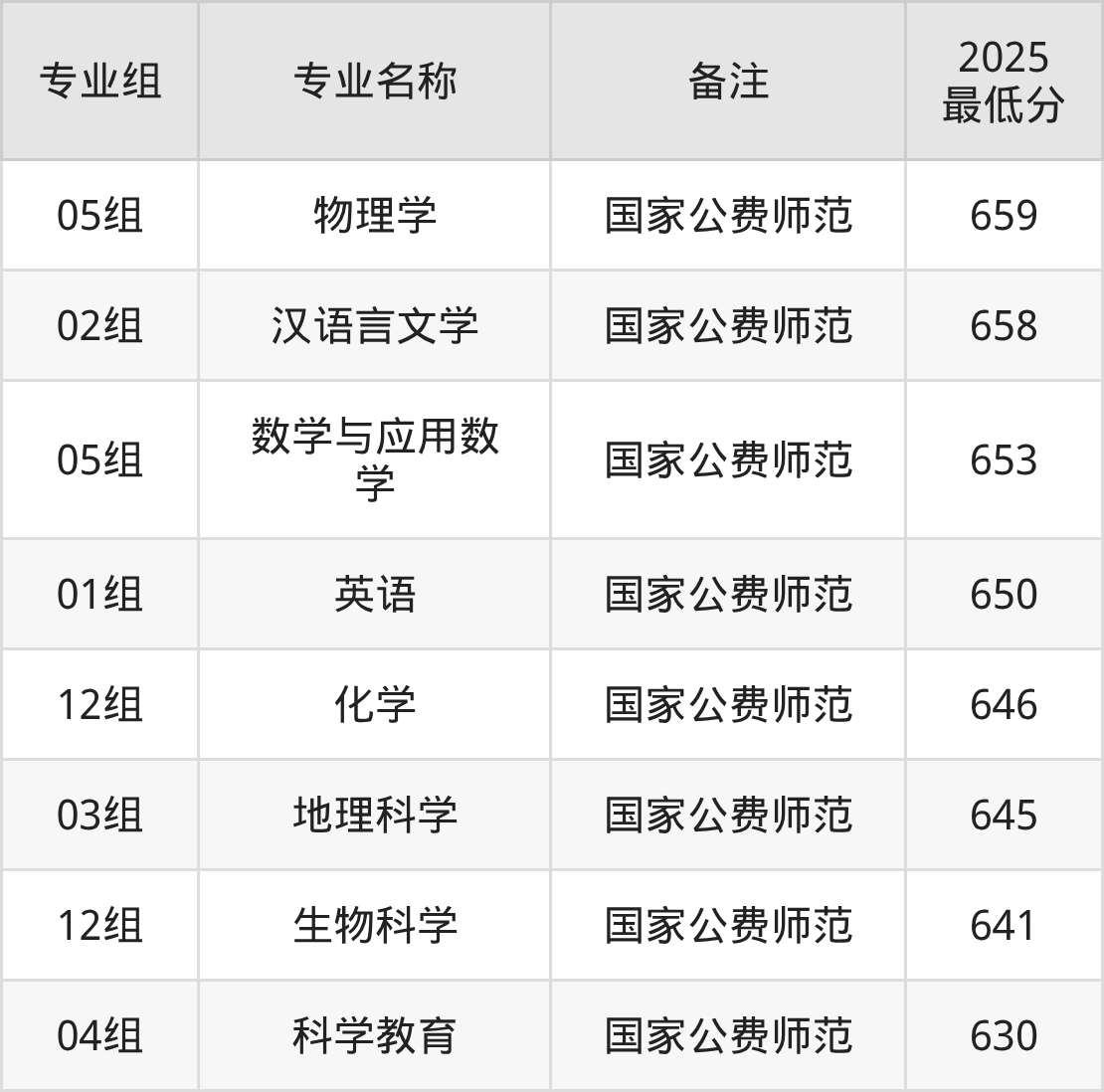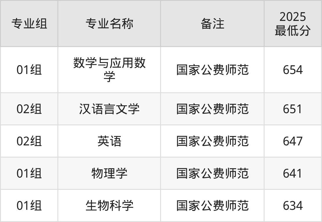 (1)东北师范大学:最低634分-654分
