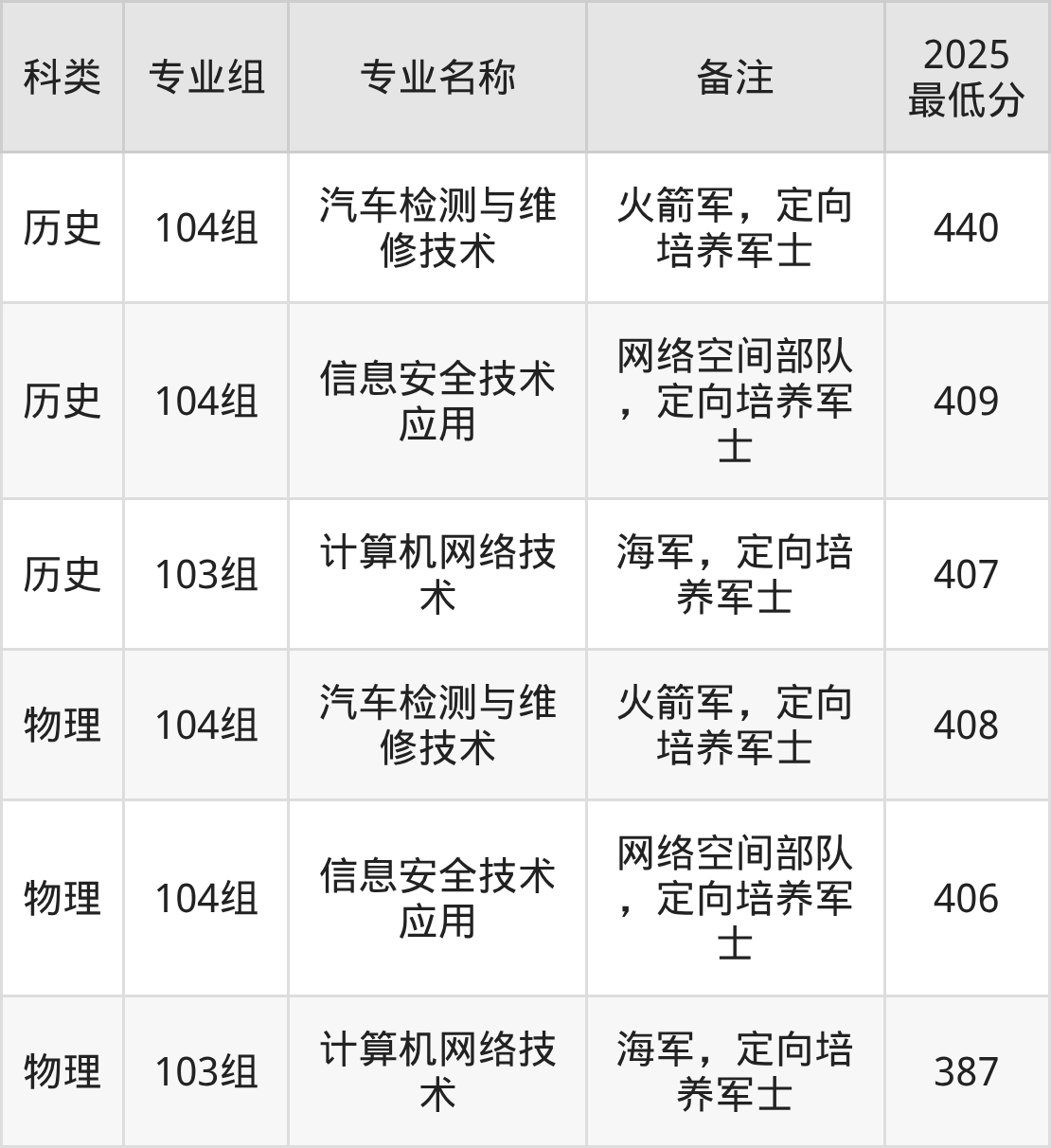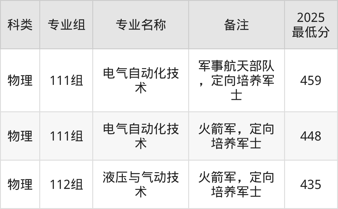 下面是各专业最低分: