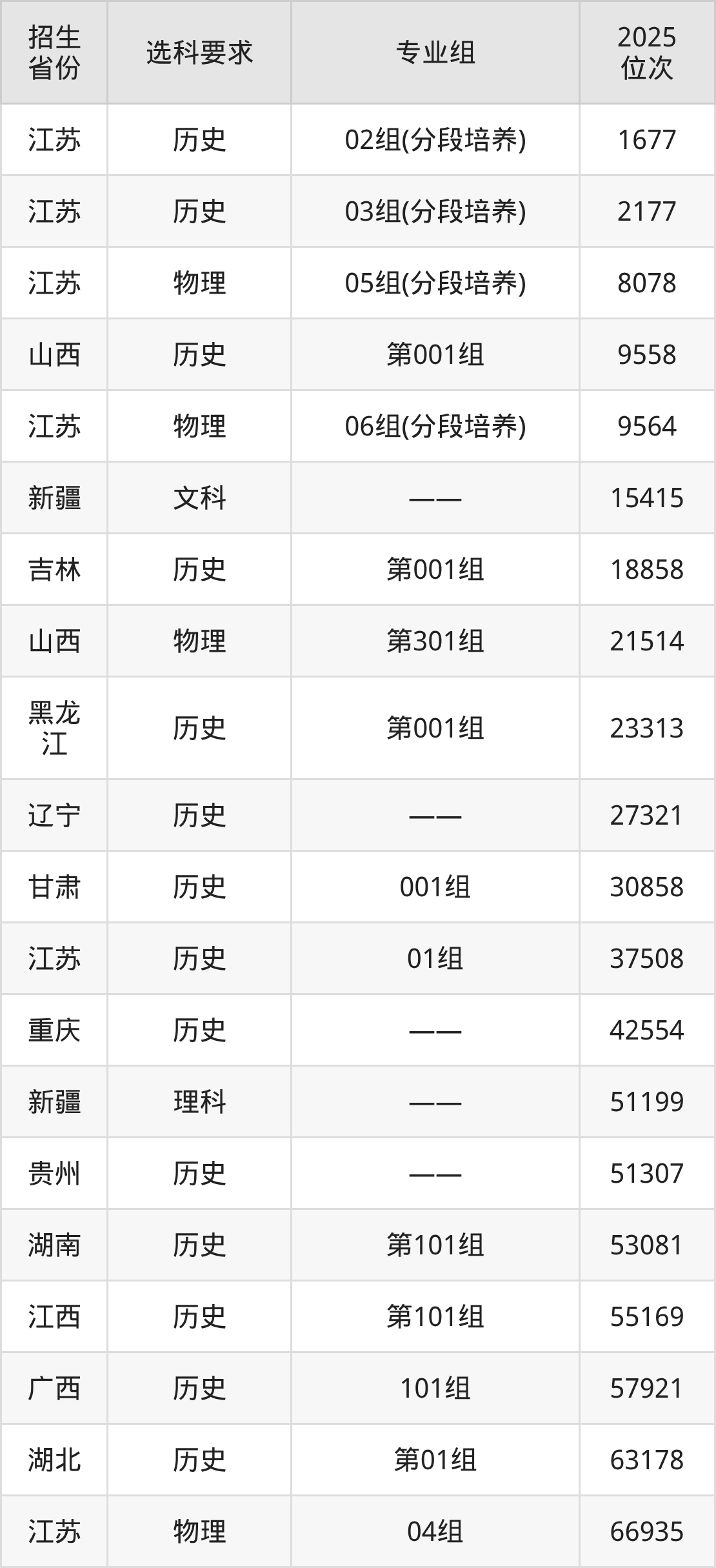 江苏财会职业学院2025年在全国各省的位次差异较大,最高位次是1677位(江苏历史类)、最低位次是339730位(山东)。各省具体位次请看下图: