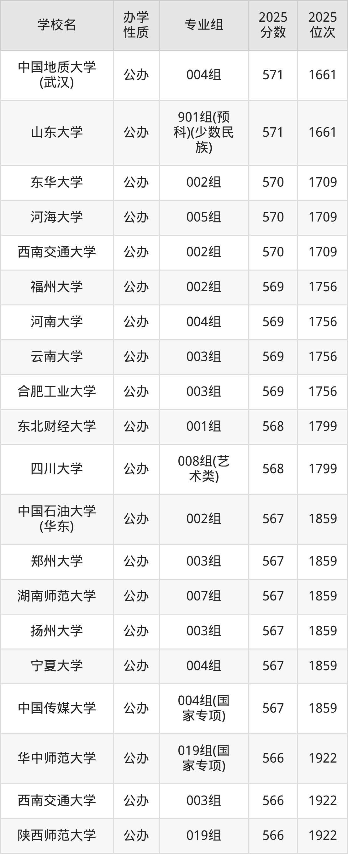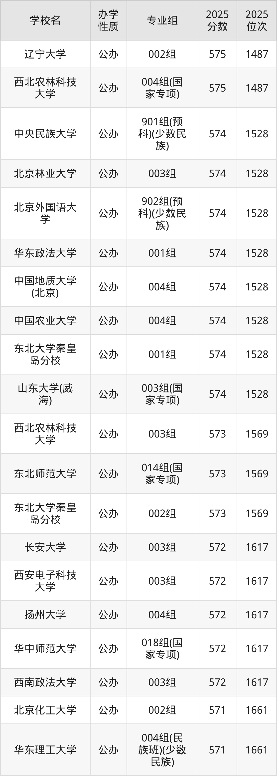 分数线:2025年物理类015组572分、历史类901组(预科)(少数民族)571分