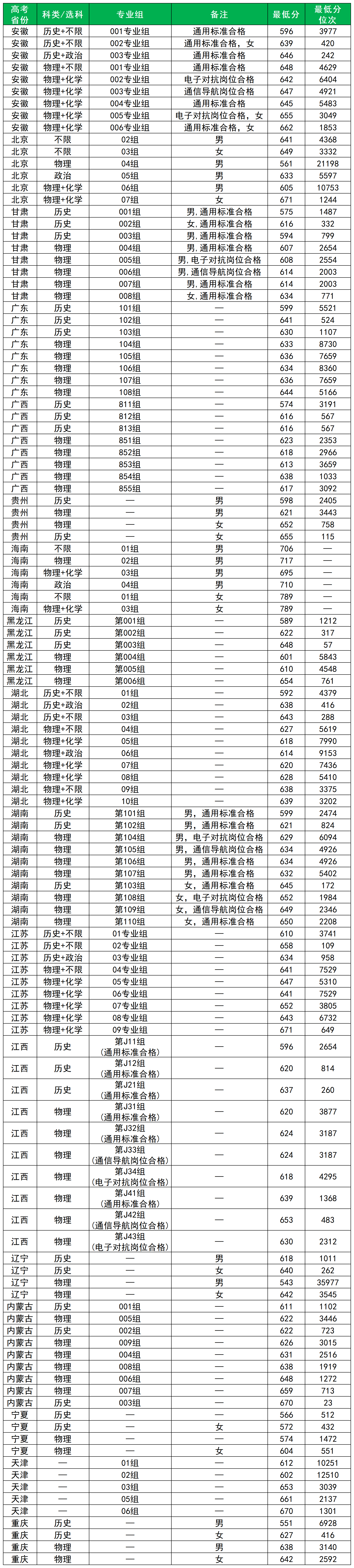 军籍生:面向全国招生,包括应届生和往届生。录取流程涉及政审、面试、体检及职业适应性检测,并在高考提前批进行。
