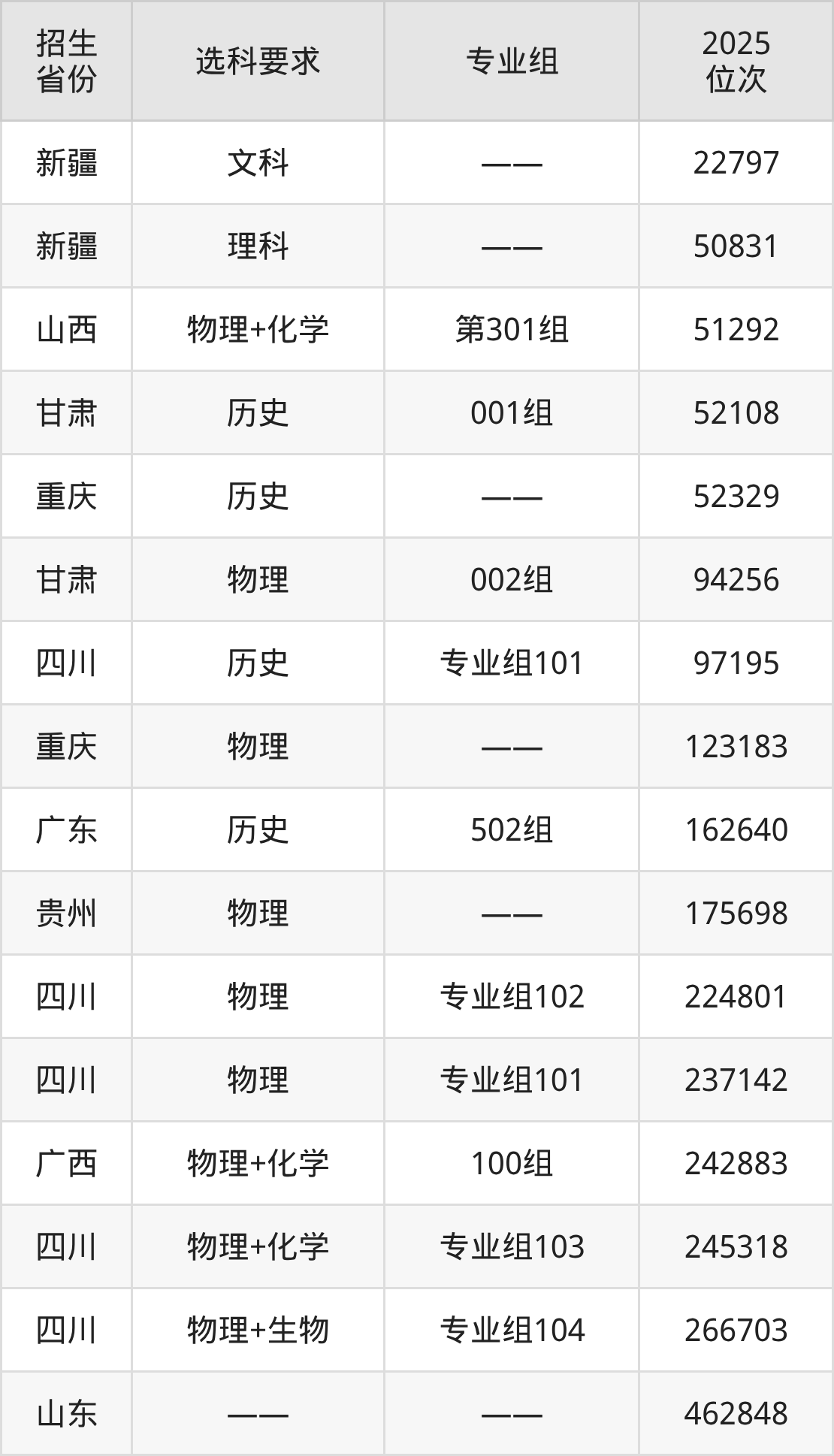 四川工商职业技术学院2025年在全国各省的位次差异较大,最高位次是22797位(新疆文科)、最低位次是462848位(山东)。各省具体位次请看下图: