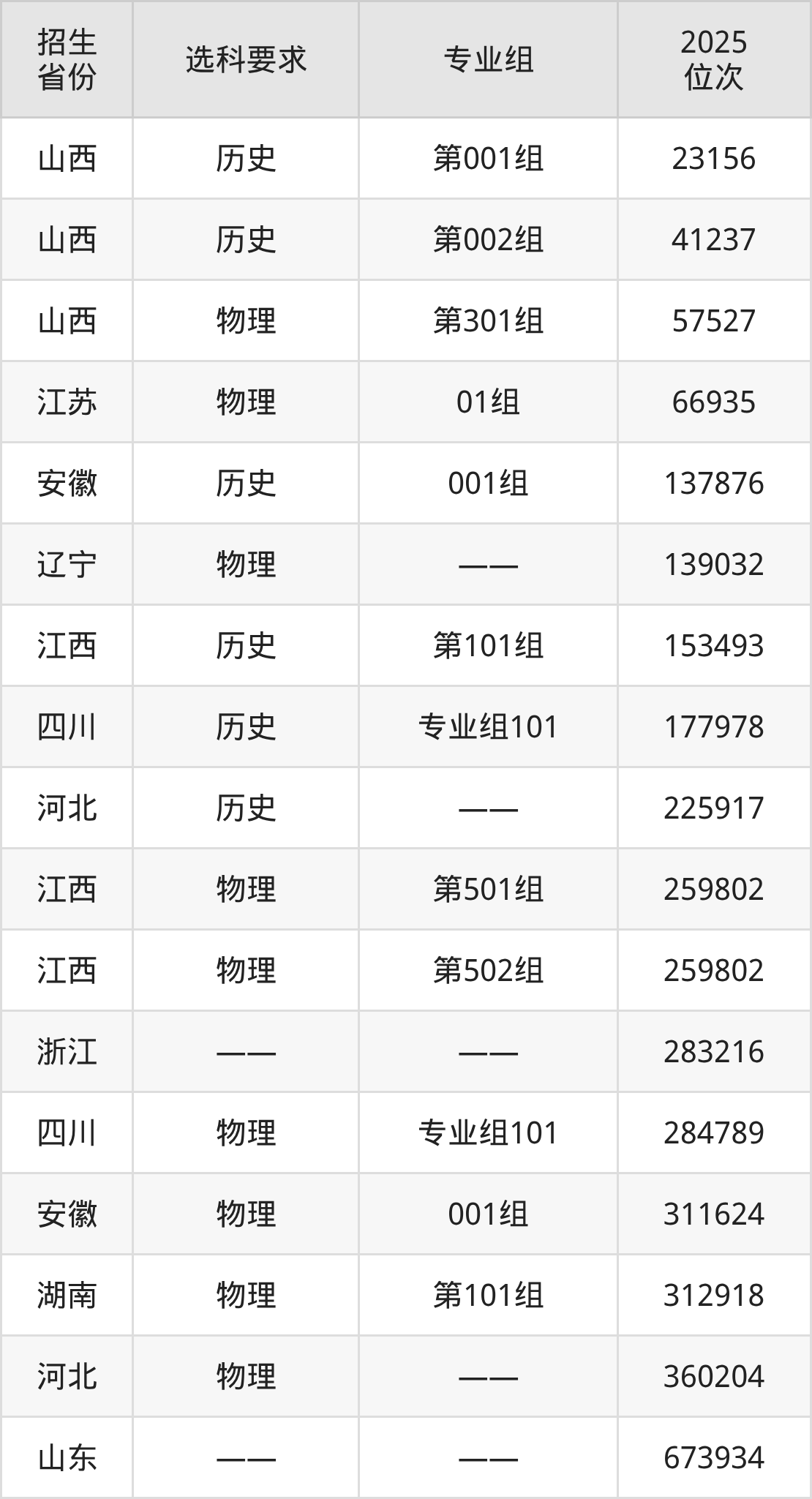 山东艺术设计职业学院2025年在全国各省的位次差异较大,最高位次是23156位(山西历史类)、最低位次是673934位(山东)。各省具体位次请看下图: