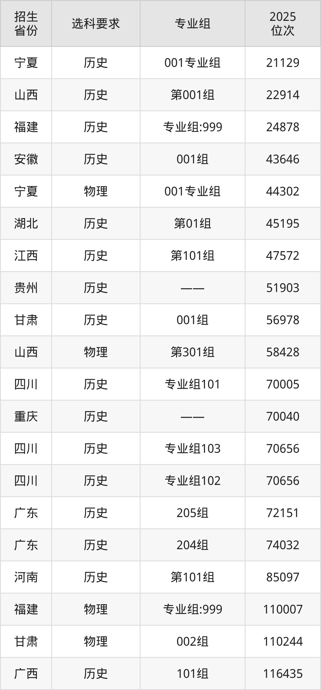 江西软件职业技术大学2025年在全国各省的位次差异较大,最高位次是21129位(宁夏历史类)、最低位次是660362位(山东)。各省具体位次请看下图: