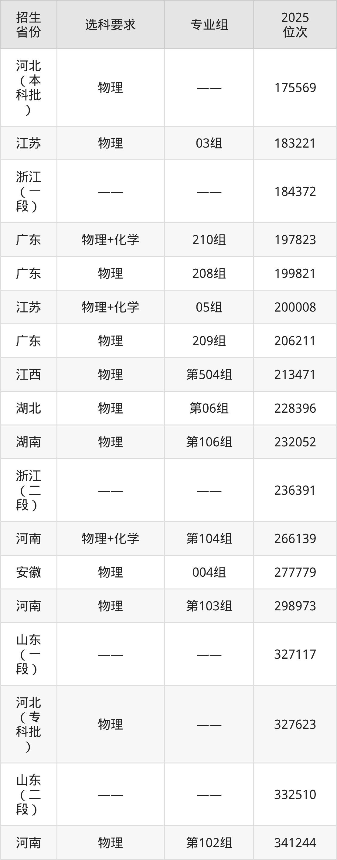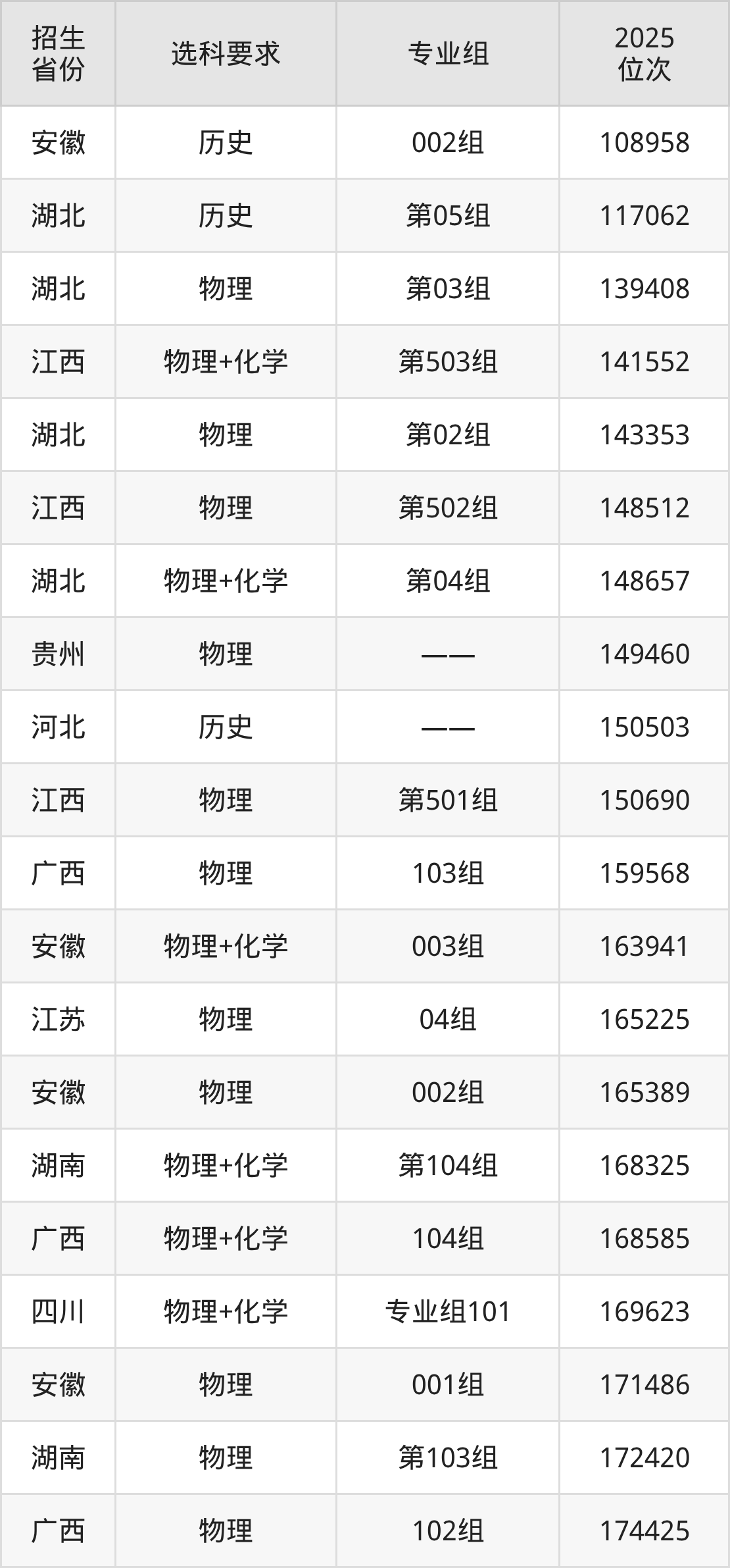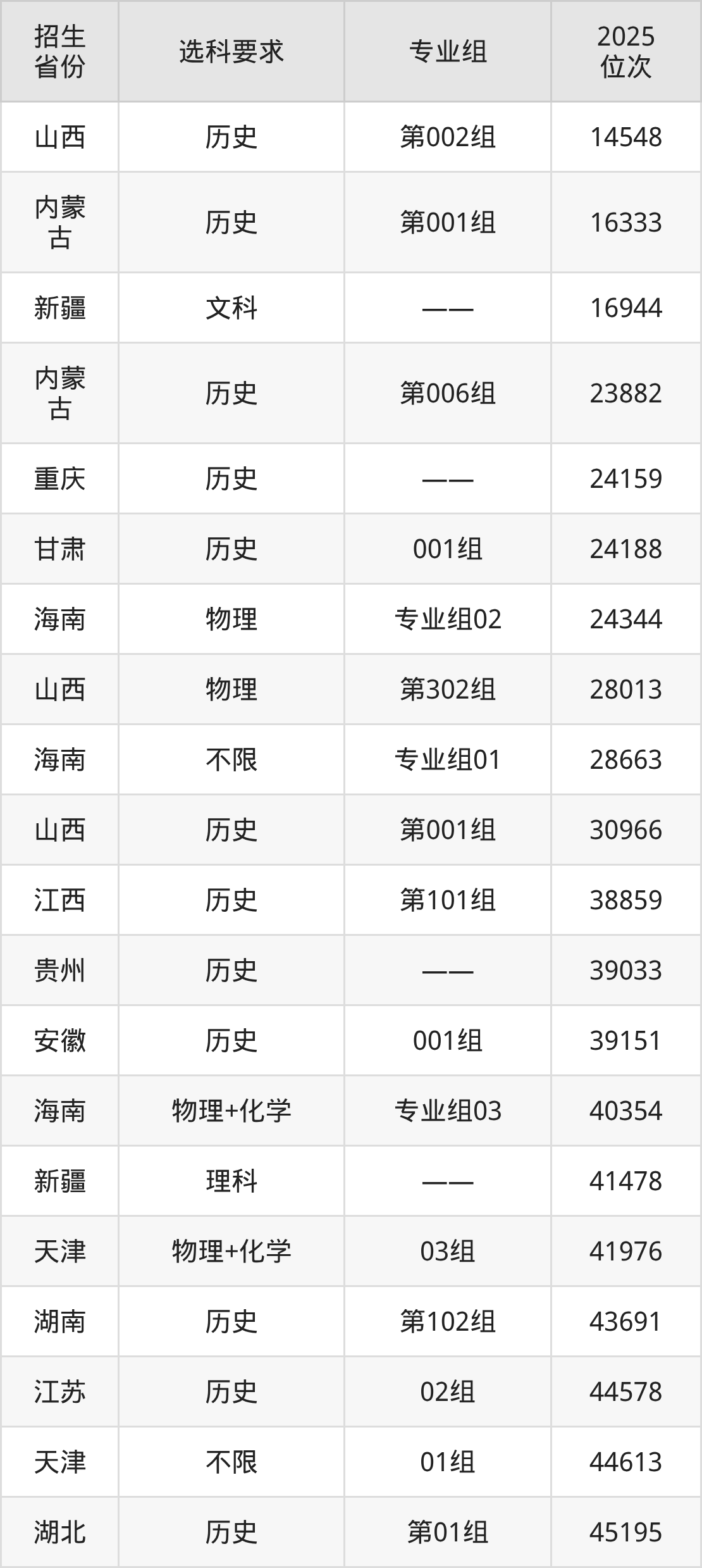 武汉纺织大学外经贸学院2025年在全国各省的位次差异较大,最高位次是14548位(山西历史类)、最低位次是341244位(河南物理类)。各省具体位次请看下图:
