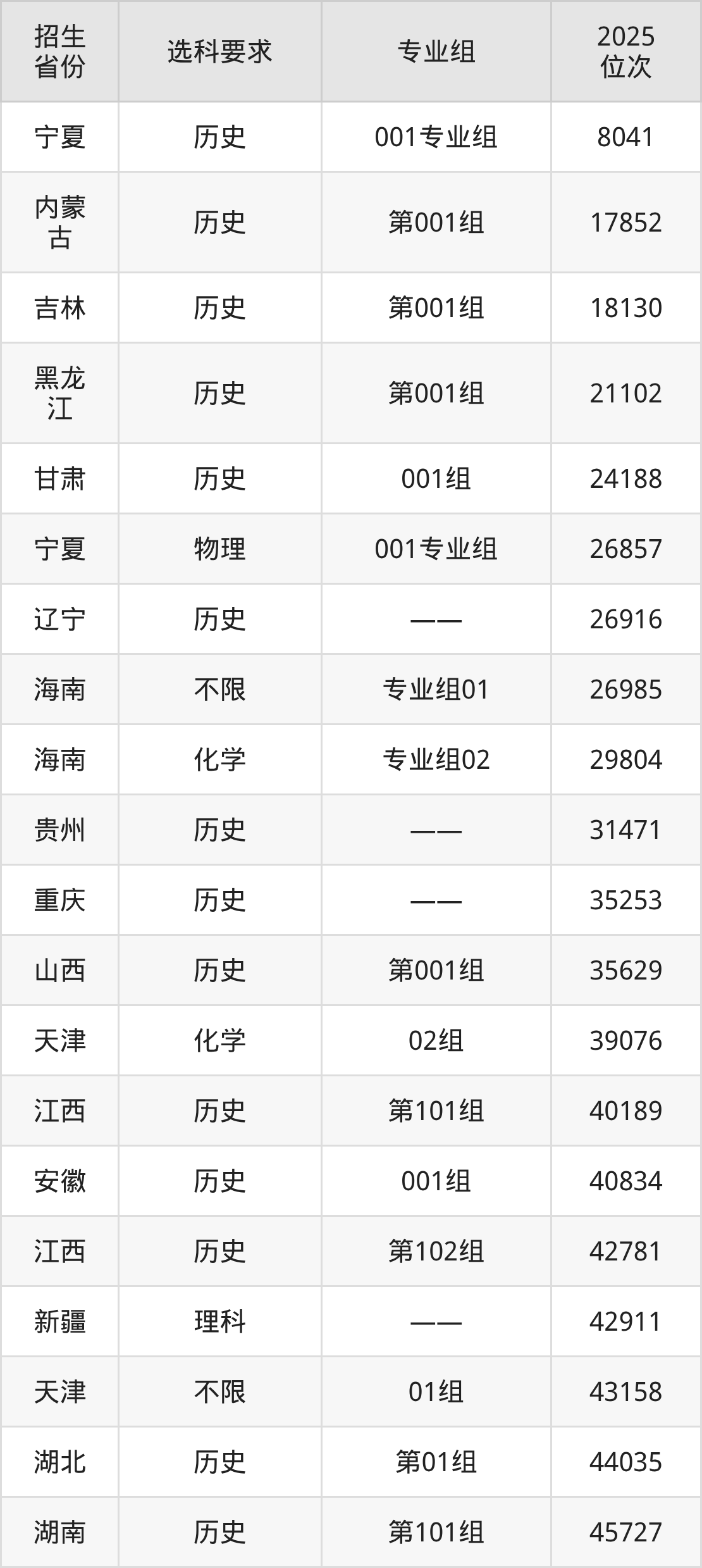 河北外国语学院2025年在全国各省的位次差异较大,最高位次是8041位(宁夏历史类)、最低位次是361317位(河北物理类)。各省具体位次请看下图: