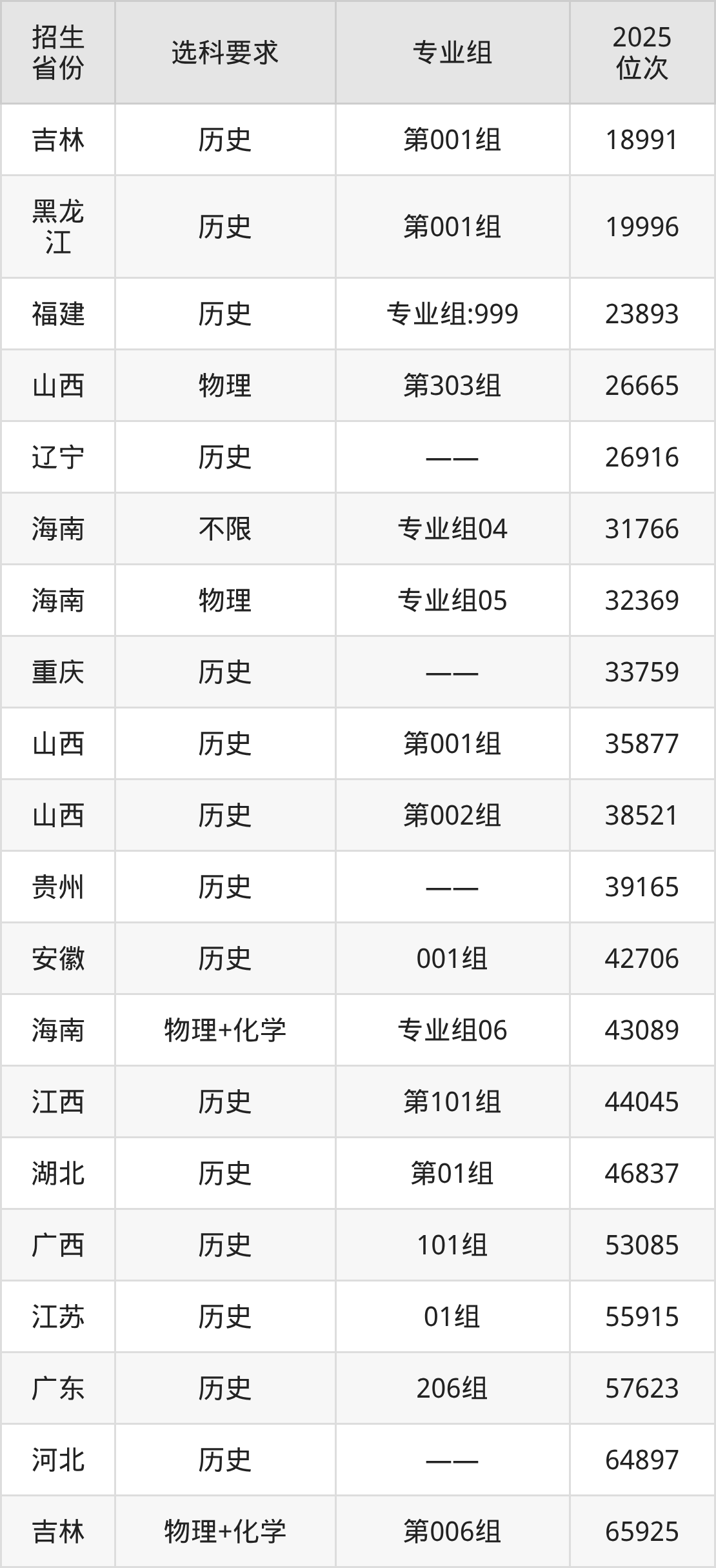 广西外国语学院2025年在全国各省的位次差异较大,最高位次是18991位(吉林历史类)、最低位次是406974位(广东物理类)。各省具体位次请看下图:
