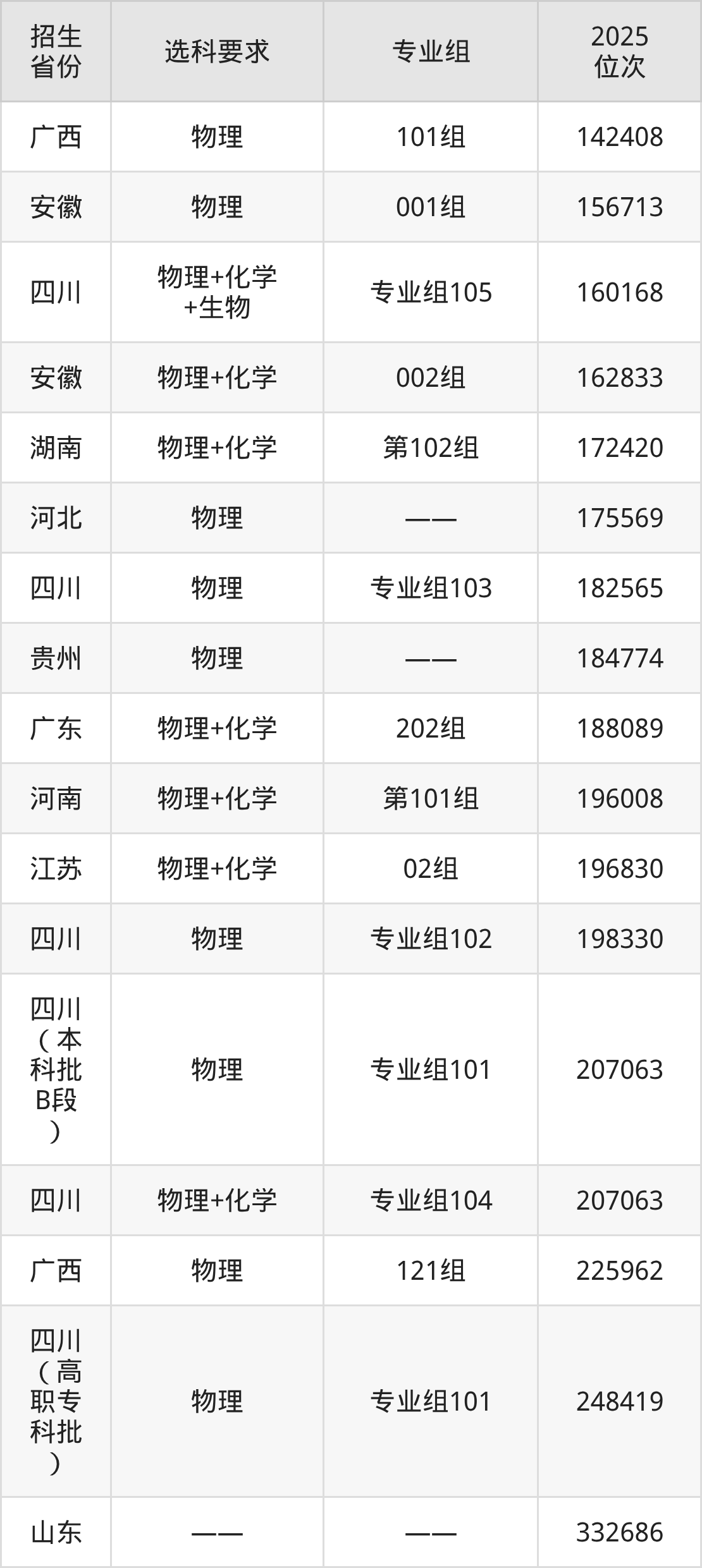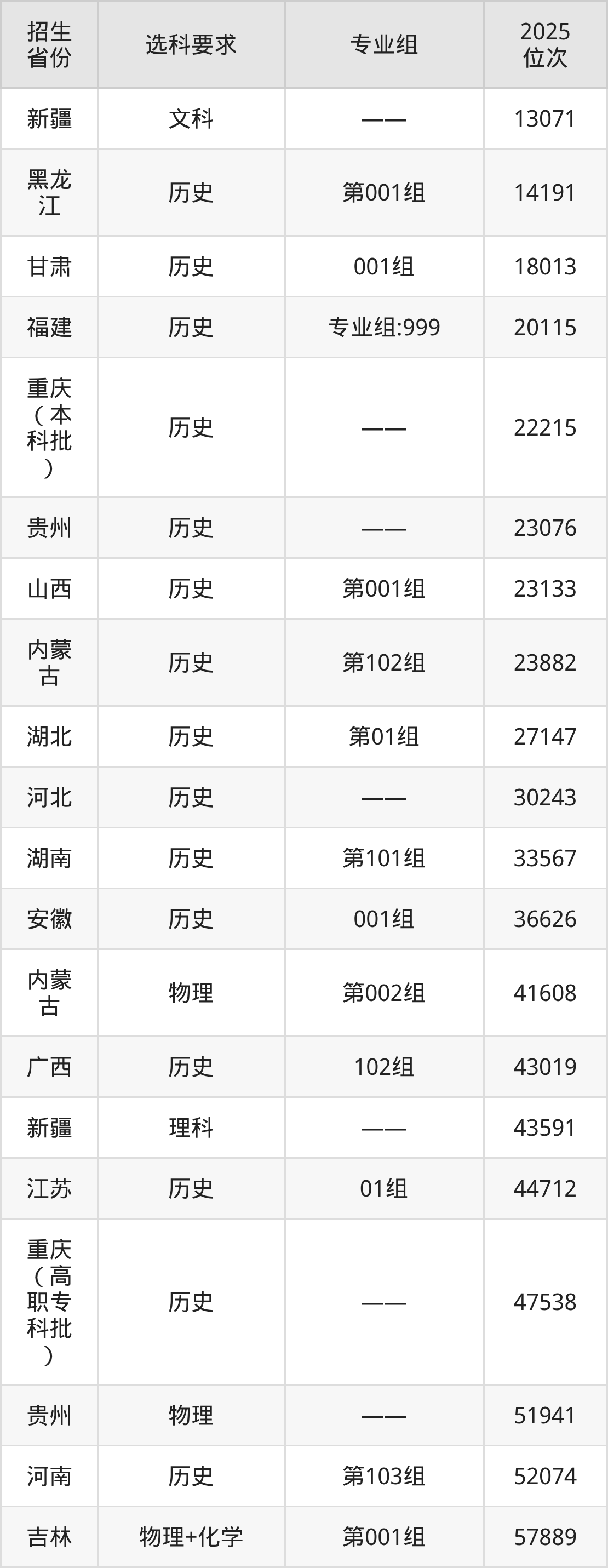 西南交通大学希望学院2025年在全国各省的位次差异较大,最高位次是13071位(新疆文科)、最低位次是332686位(山东)。各省具体位次请看下图: