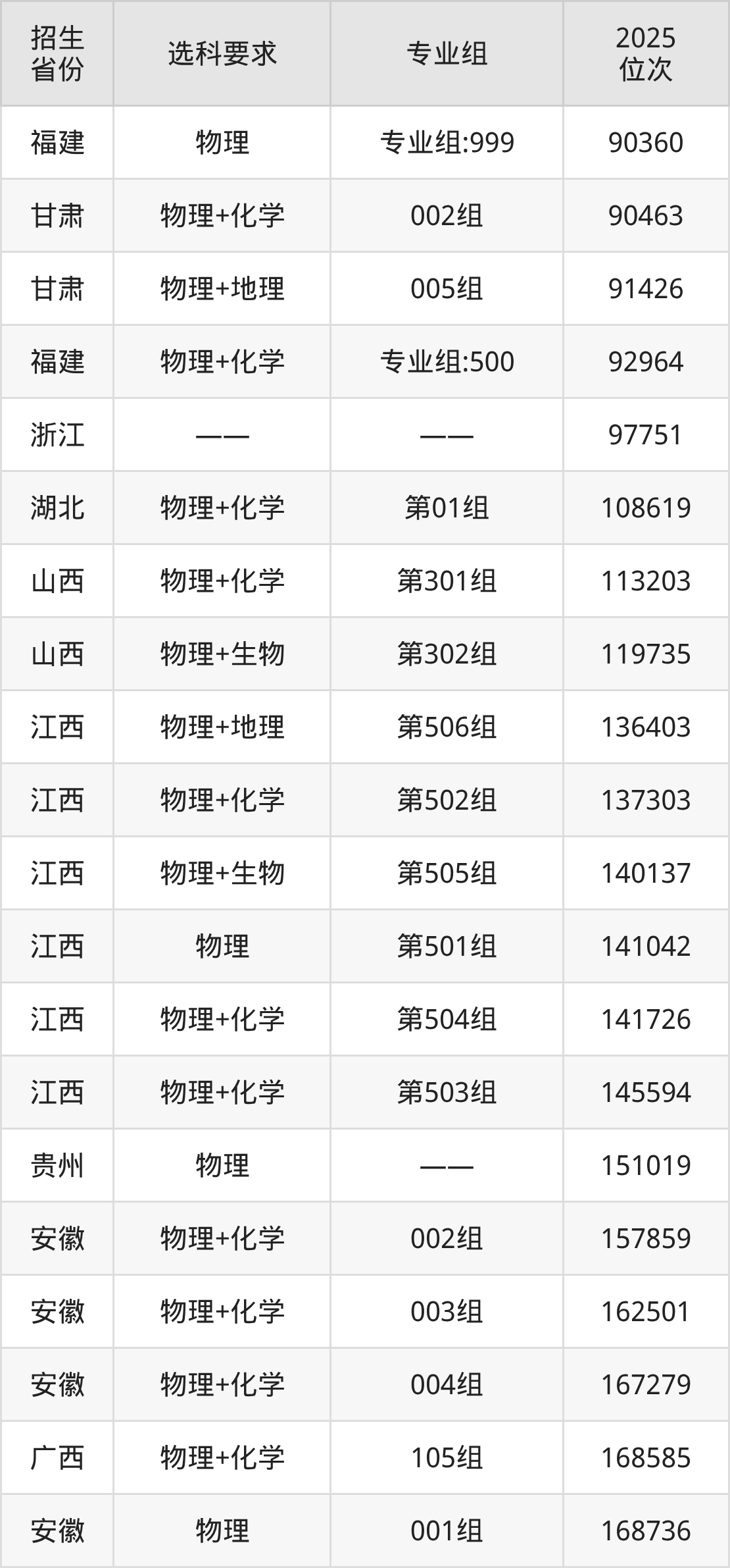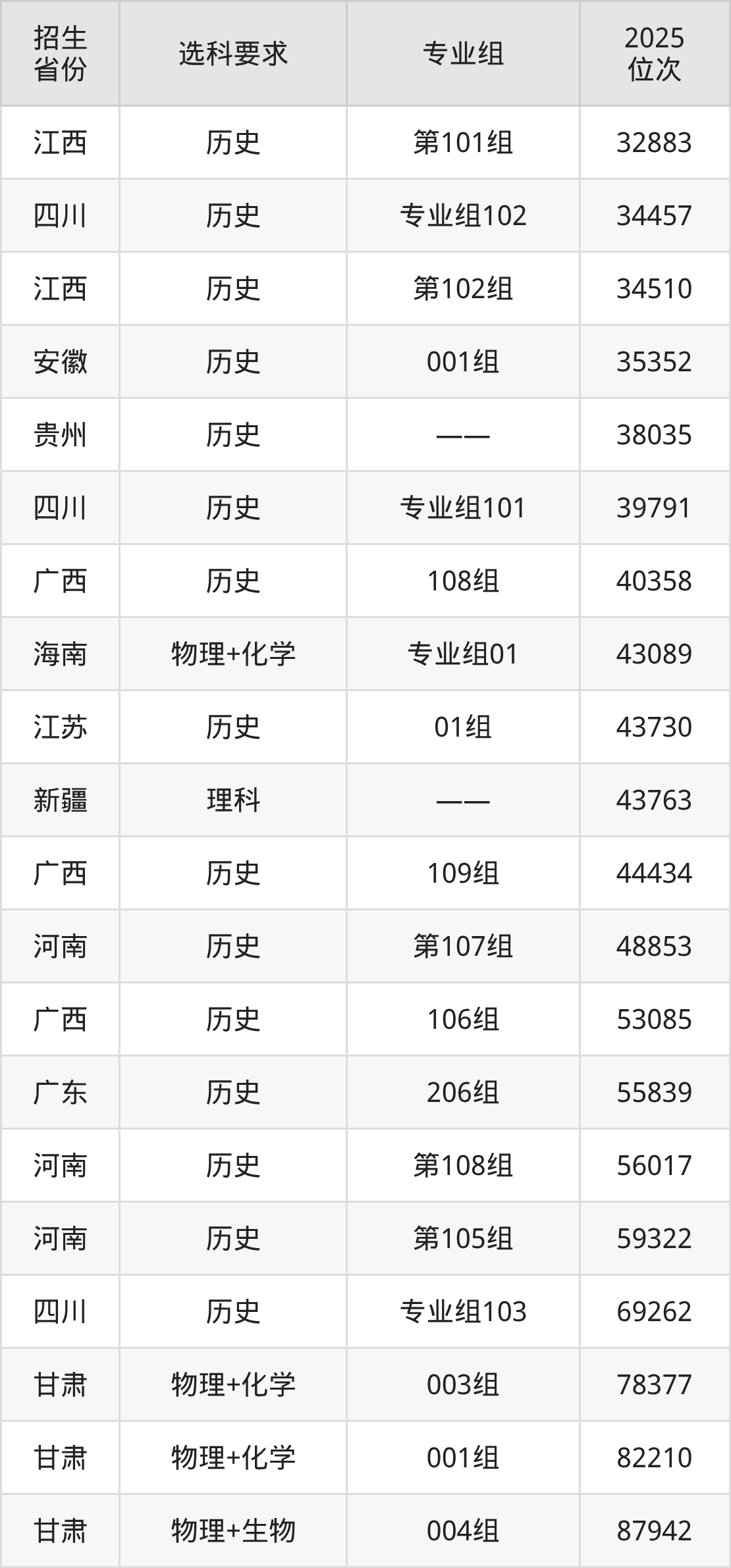 浙江农林大学暨阳学院2025年在全国各省的位次差异较大,最高位次是32883位(江西历史类)、最低位次是346607位(河南物理类)。各省具体位次请看下图:
