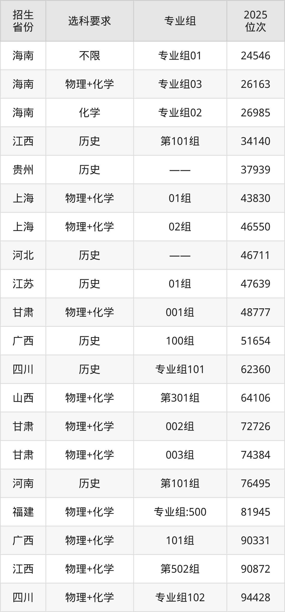 温州医科大学仁济学院2025年在全国各省的位次差异较大,最高位次是24546位(海南)、最低位次是272445位(山东)。各省具体位次请看下图:
